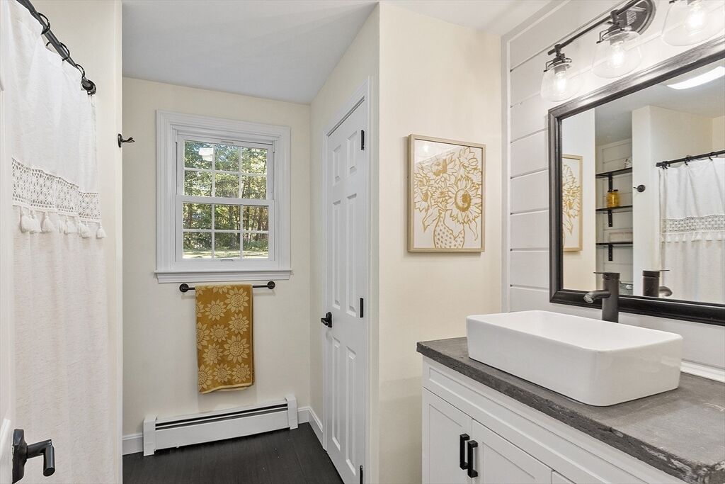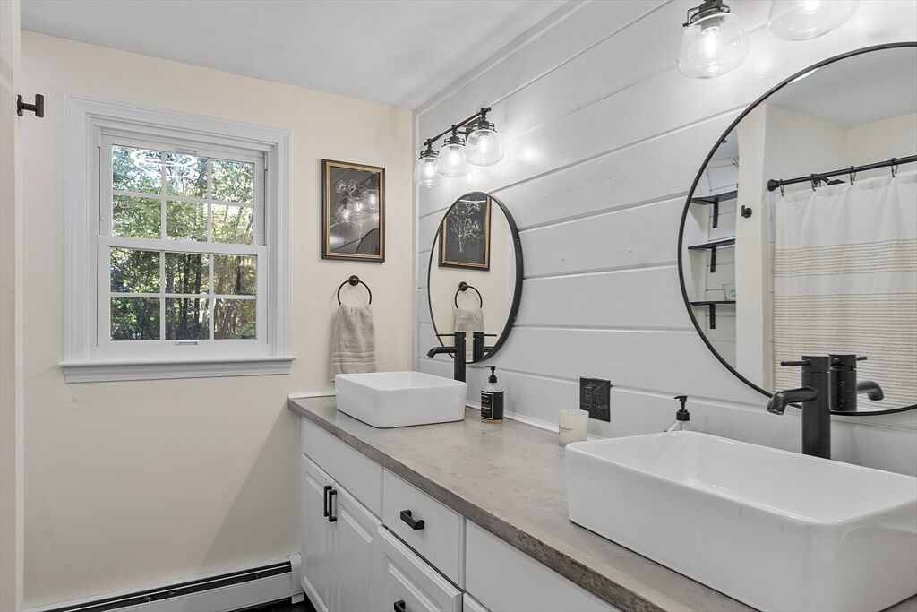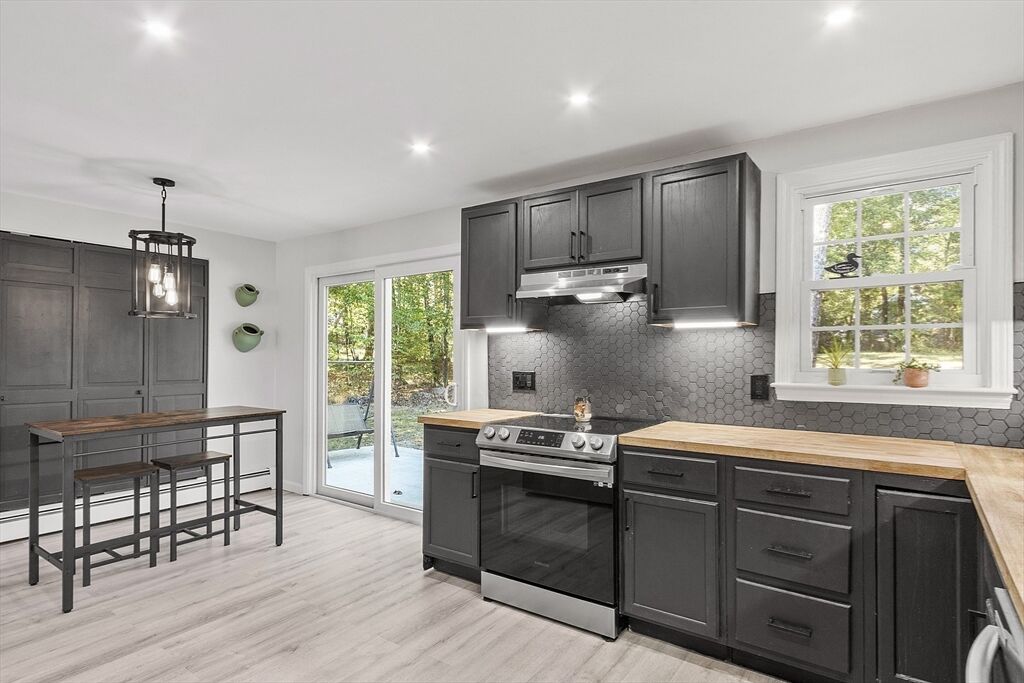 OH's Sat&Sun 12-3. This charming 3 Bd 2 Ba home offers a mix of comfort & natural beauty, situated on a 1+ acre wooded lot in a cul-de-sac neighborhood. Private setting yet close to shopping, schools, Rte 2 & Fitchburg State. At over 2000 sqft, this spacious cape feels open & bright & has many updates. The kitchen features butcher block counters, tile backsplash, SS appliances & abundant cabinets. Enjoy the casual breakfast area or entertaining in the dining room w/ hardwood floors & beautiful fireplace. The large living room addition feat. cathedral ceilings, rustic beams, skylight, wood stove & office space. The main level also boasts a roomy Bd & full Ba, perfect for one-level living. 2nd level has 2 sizable Bd's w/ lots of closets & upgraded Full Ba. Partially finished walkout basement adds more space for entertainment, the built-in bar makes it great for sunday games. Bonus features: Vinyl siding,Buderus heater,vinyl windows,mudroom off 2-car garage,new paved driveway w/xtra space