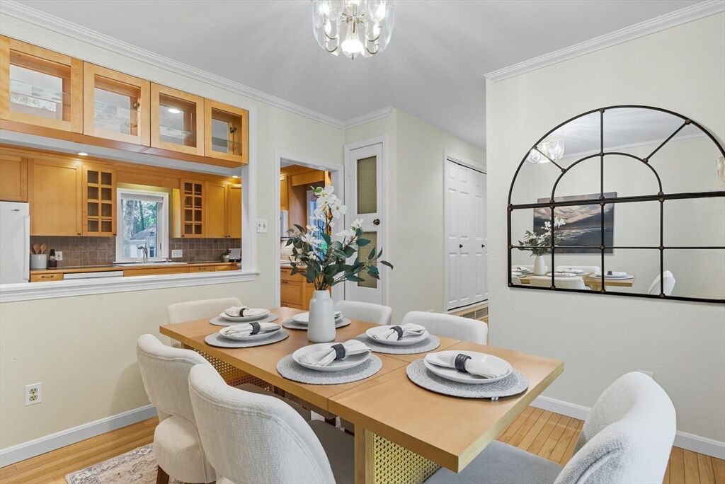 Tucked away on a cul-de-sac in tranquil Turkey Hill Village, this lovely townhouse lives like single-family w/ease of condo living. Surrounded by woods, it’s a suburban oasis minutes to MA-90, I-95, Rtes 30 & 9. Enjoy Wayland’s natural beauty, New England charm & top-rated schools-while staying close to Boston. Beautifully landscaped grounds welcome you home. Inside discover sun-filled spaces, gleaming hardwoods, open layout & peaceful wooded views. Living room has mantled fireplace, custom built-ins & picture window. Perfect home office or possible 1st-fl bed conversion. Open dining area w/slider to private patio ideal for relaxing or entertaining. Beautiful kitchen w/maple cabinets, farmer’s sink, backsplash, pantry & newer appliances. Upstairs offers spacious primary suite w/walk-in closet, built-in & sit-down shower. Good-sized 2nd bed & full bath. Basement storage & expansion potential. Replacement windows. Newer systems. Pro-managed, pet-friendly HOA w/pool & tennis/pickleball.