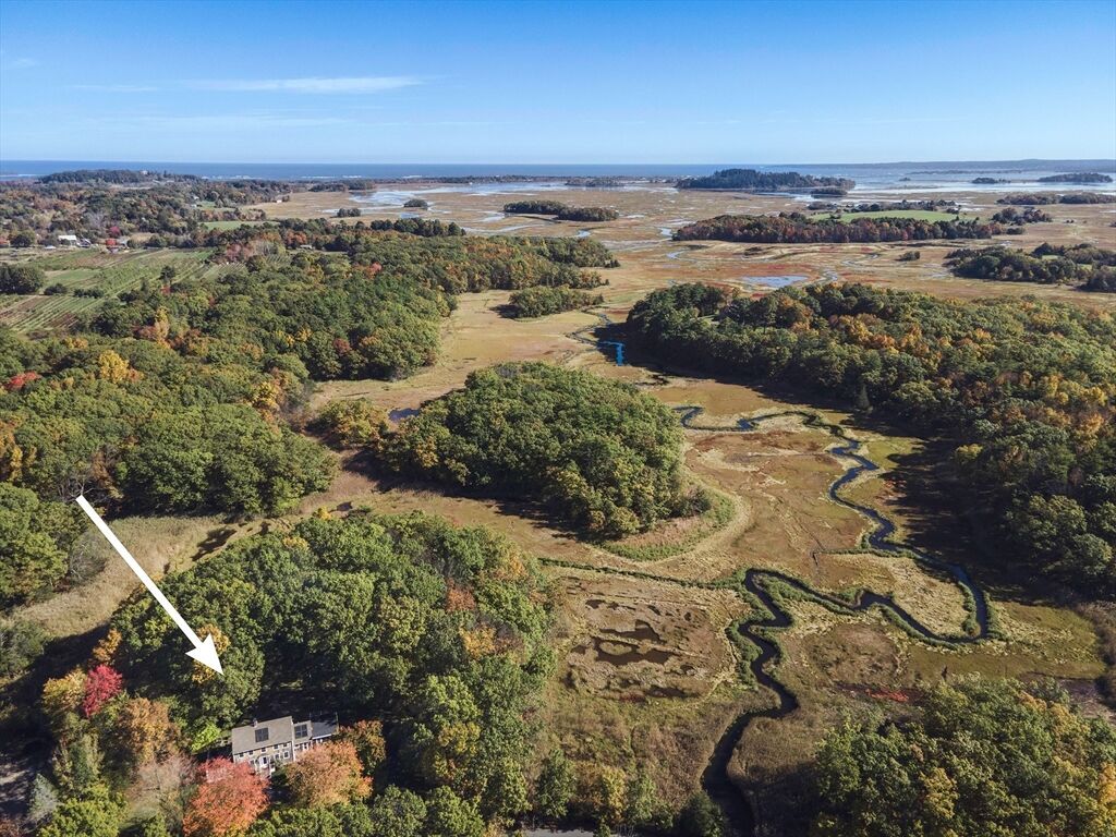 Located on a recently designated dead-end road with picturesque marsh views, this charming colonial home at 8 Old Essex Road offers a delightful blend of comfort and versatility. With 4 bedrooms, including a legal two-family setup, the home features a one-bedroom apartment on the first floor with its own entrance and deck, ideal for guests or rental income. The main house boasts three bedrooms, complemented by two private home offices on the third floor, perfect for work-from-home needs. An updated kitchen and bath provide modern conveniences, while wood floors and skylights enhance the home's warmth and natural light. Outdoor enthusiasts will appreciate the expansive decks overlooking the tranquil marsh, a large two-car garage/workshop with glass doors and tall windows, and a unique treehouse that's fun for all ages. Close proximity to Crane Beach and restaurants, this home offers a perfect retreat in a stunning location.
