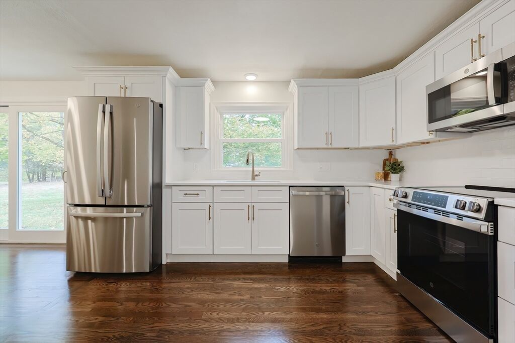 Welcome to 8 Ridge Dr, Dudley MA! Nestled on a quiet side street, this beautifully updated ranch is move-in ready and full of charm. Step inside to find a stunning new kitchen with modern finishes, refinished hardwood floors, and a bright, open living room featuring a beautiful electric fireplace—perfect for cozy evenings. The new bathroom offers fresh style and comfort, while the new minisplit heating and cooling system ensures year-round efficiency. Enjoy single-level living at its best in a peaceful setting, just minutes from local amenities. A true Dudley gem - Reach out to book your showing today!