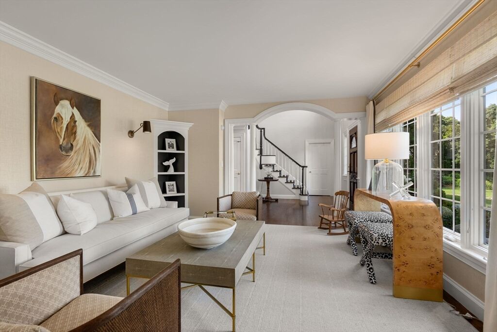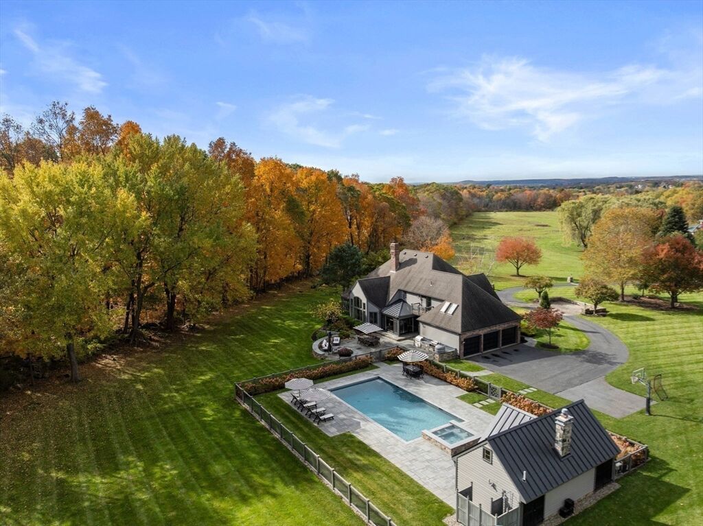 Rare 18+acre estate in sought-after Southborough offering privacy, elegance & possibility. Stately brick residence on 6 landscaped acres plus add’l 12-acre parcel ideal for equestrian, farm or retreat. Resort-style living features heated saltwater pool w/spa, vaulted pool house w/cabana bath, full outdoor station (grill station + pizza oven), stone patios & poolside outdoor shower. Light-filled interior showcases custom millwork, oversized windows & inviting flr plan. Gracious LR w/picture window opens to DR. Great rm w/soaring ceilings, stone FP & walls of glass overlooking patio. Four-season sunrm offers casual dining & outdoor access. Flexible layout served by 5-BR septic: 1st-flr primary suite w/vaulted ceiling & spa-like bath, plus add’l ensuite BR on 1st flr or office. New mudroom on 1st flr. Upstairs offers 3 BRs, a full bath & fam rm/den. 3-car garage, custom stonework & refined finishes complete this exceptional property. Convenient to Boston, Worcester & top-ranked schools.