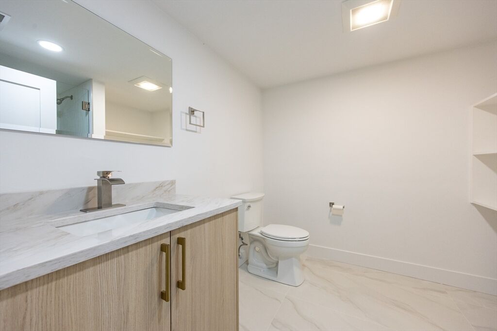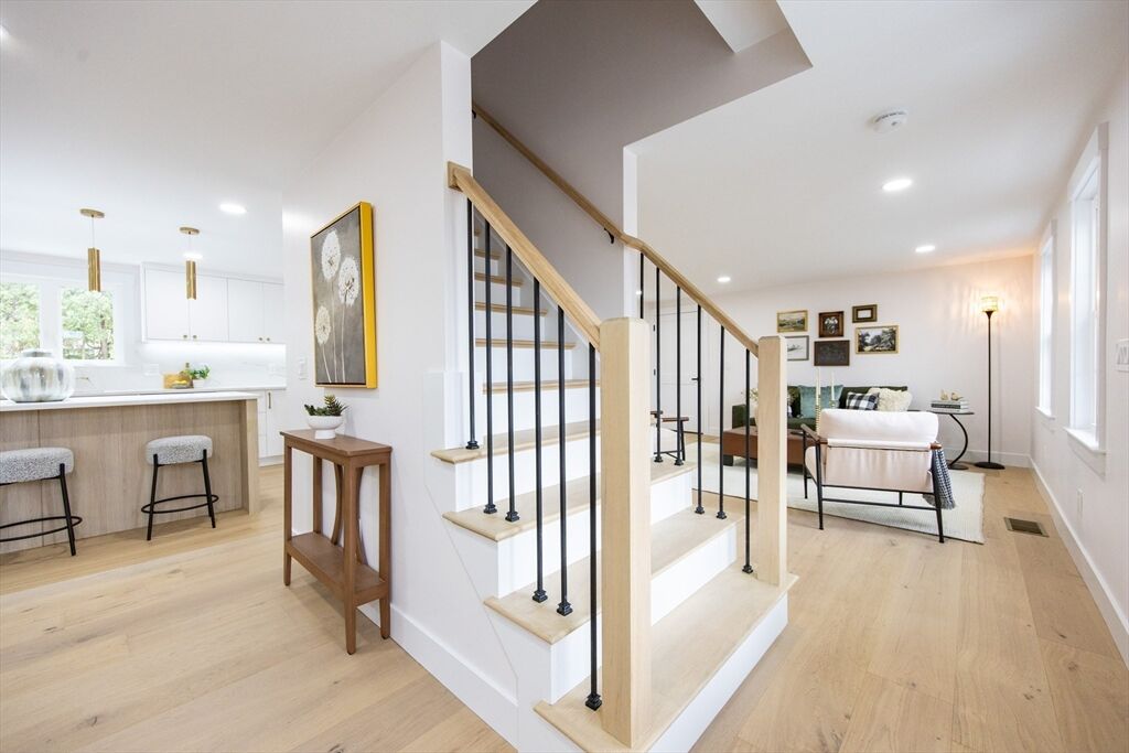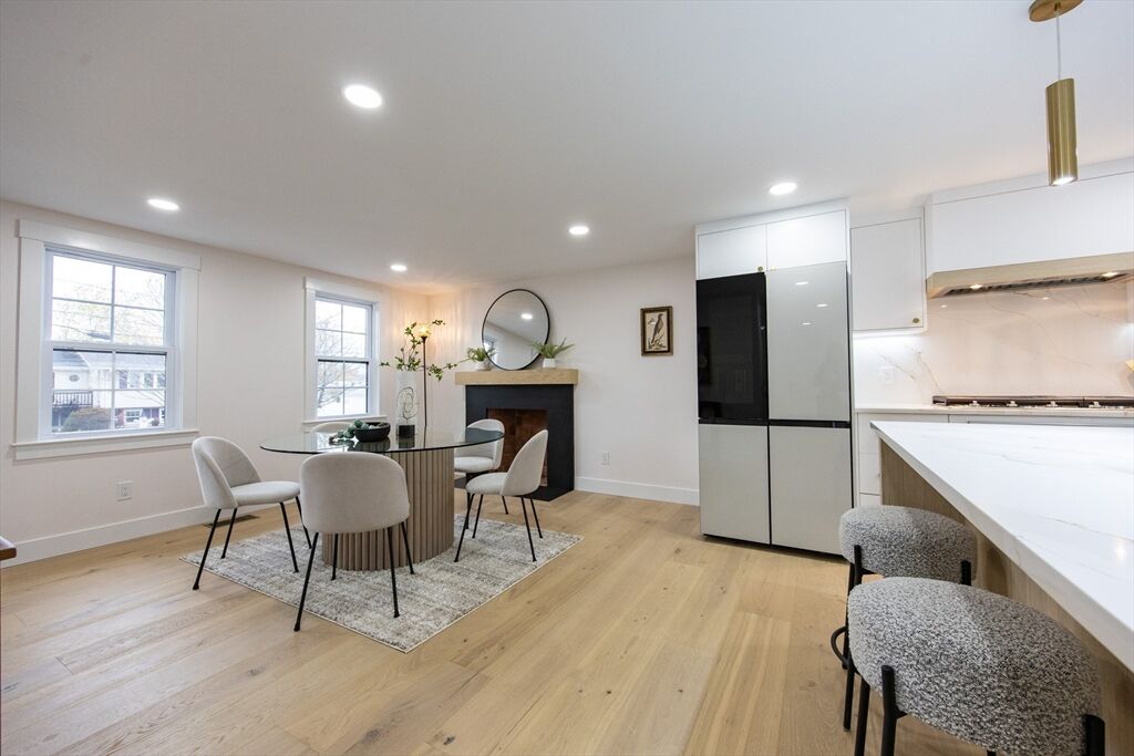 Fully Renovated Colonial Farmhouse! This stunning 4-bedroom, 3.5-bath home has been completely rebuilt from the studs up, blending timeless farmhouse charm with modern design. The sun-filled, open-concept layout features engineered hardwood flooring and a spacious living room and dining room with a cozy wood-burning fireplace. The chef’s kitchen is cabinet-packed and showcases quartz countertops, a matching backsplash, and sleek modern appliances, plus a frameless door that leads to the pantry for additonal storage. Upstairs, the luxurious primary suite offers two expansive closets and a spa-like bath with a tiled stand-up shower. A full laundry room on the second floor adds convenience. All bedroom closets feature closet systems & lighting. The finished lower level includes a full bath and exterior access—perfect for a future ADU. Enjoy the fully vinyl-fenced yard ideal for pets and play. Every detail of this home has been thoughtfully designed for comfort, style, and functionality.