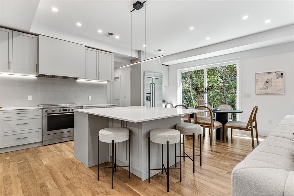 Discover 80 Louise Road, the newest luxury townhome by Arco Build + Design, where modern craftsmanship meets tranquil surroundings. Perfectly positioned on a quiet cul-de-sac abutting conservation land, this approx. 3,350 sq. ft. residence features 4 bedrooms (3 ensuite), a 2-car garage, and a private fenced yard. The main level showcases a designer kitchen with an oversized island opening to elegant dining and family areas, plus a first-floor bedroom and full bath. The upper level offers a spa-like primary suite and two additional ensuite bedrooms, while the finished top level provides a flexible bonus space ideal for an office, gym, or media room. Situated in Newton’s coveted Chestnut Hill, the home is moments from The Street, Chestnut Hill Square, Wegmans, Life Time, and top-rated schools, parks, and major route, a rare blend of luxury, nature, and convenience.