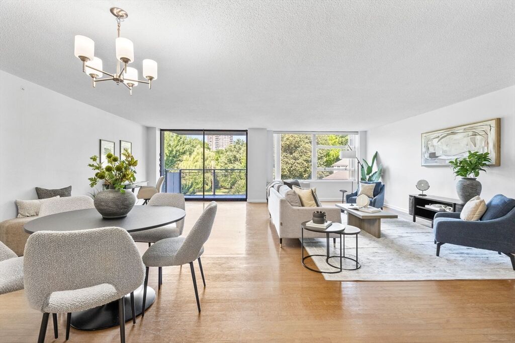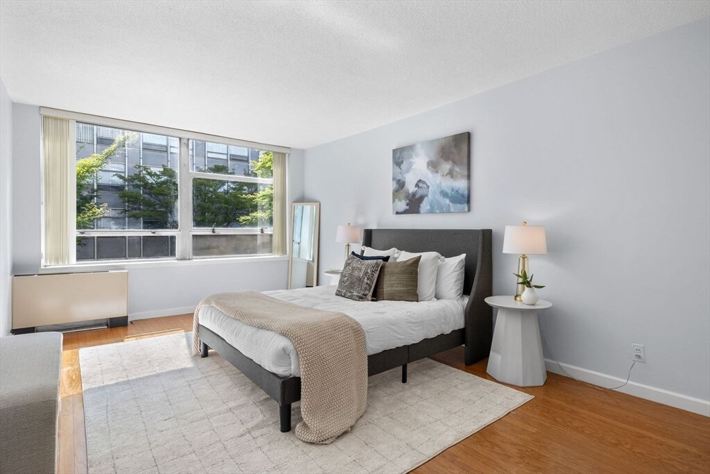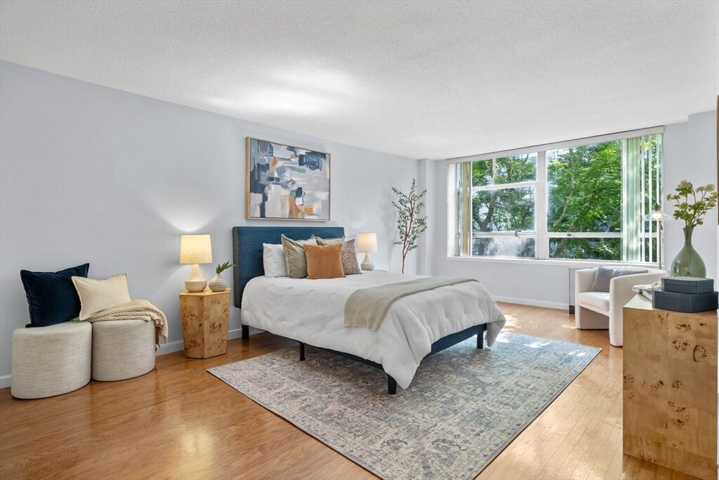 Step into this sun-drenched and expansive 2 bedroom, 2 bath that lives large thanks to an open-concept design and generous windows allowing light to pour in throughout the day. The living and dining areas flow seamlessly to a balcony offering serene park views, creating the perfect setting for entertaining or relaxed everyday living. Key features include a modern, well-proportioned kitchen visible from the main living area, a primary suite with a private bath and ample walk-in closet space, a second bedroom or office, and hardwood floors throughout, with a neutral palette ready for any decor. The private balcony offers outdoor seating and greenery-filled views, overlooking the magically peaceful Griggs Park. Conveniently located near Coolidge Corner, Washington Sq & Brookline Village, this home puts shops, dining, parks, public transit and the LMA all within minutes walk, drive or T ride. One assigned garage parking space and additional storage are included in the sale.