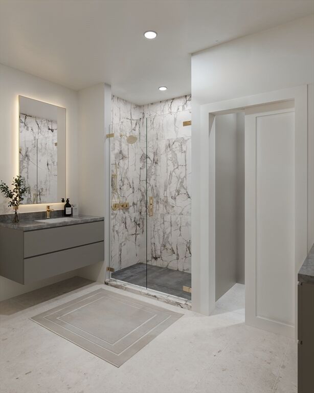 Welcome to 80onVernon, a boutique collection of 8 new luxury condominiums in Brookline’s Coolidge Corner. Each home offers 3 bedrooms, modern finishes, garage parking, and private outdoor spaces. This unit features two garage parking spaces, two balconies, a den, and a direct access elevator. The building’s sleek exterior, oversized windows, and glass balconies maximize light and park views. Residents enjoy a stylish lobby with secure mail and package areas. Interiors feature 9-foot ceilings, floor-to-ceiling Drutex windows, open living spaces with fireplaces, and kitchens with waterfall-edge stone countertops, Dell Anno cabinetry, and Thermador appliances. Wood accents and designer lighting add warmth and sophistication. Located steps from Saint Mark’s Park, the Coolidge Corner Theatre, Trader Joe’s, and acclaimed restaurants, plus the MBTA Green Line for direct Boston access, 80onVernon blends modern design, everyday convenience, and community charm. Expected Delivery summer 2026.