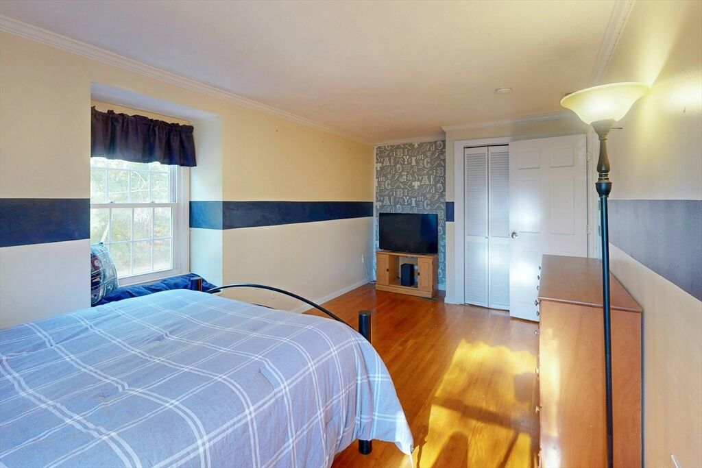 Bedroom 3 | Closet Closet/Cabinets - Custom Built Flooring - Hardwood Chair Rail Crown Molding |