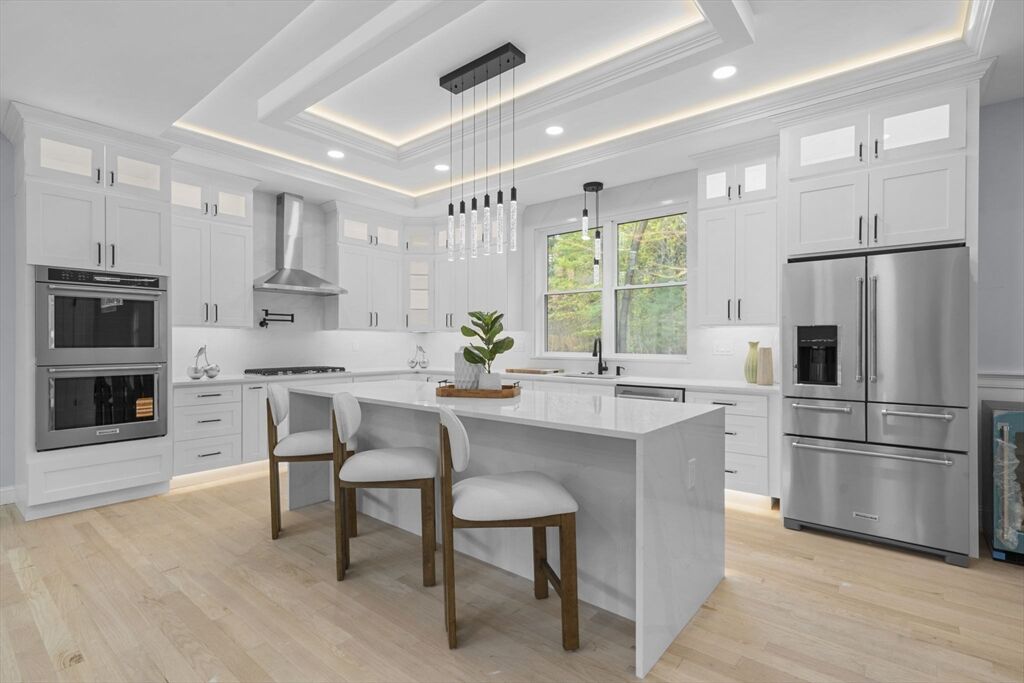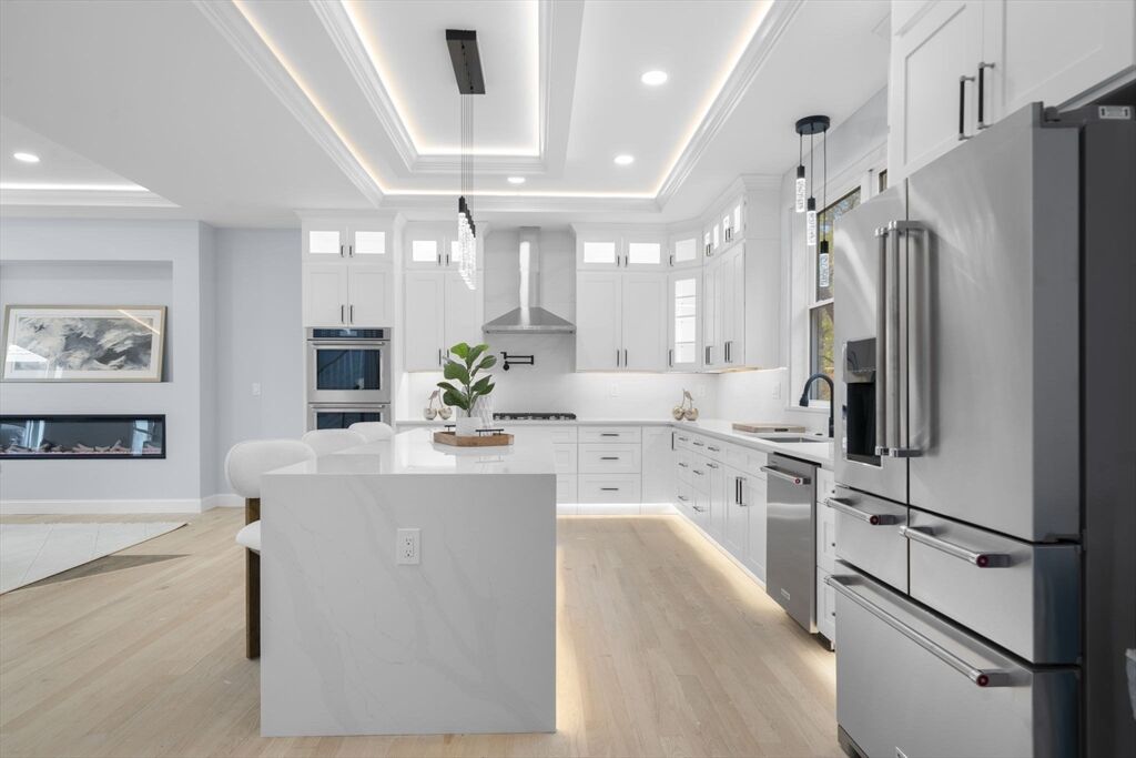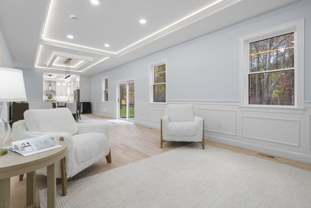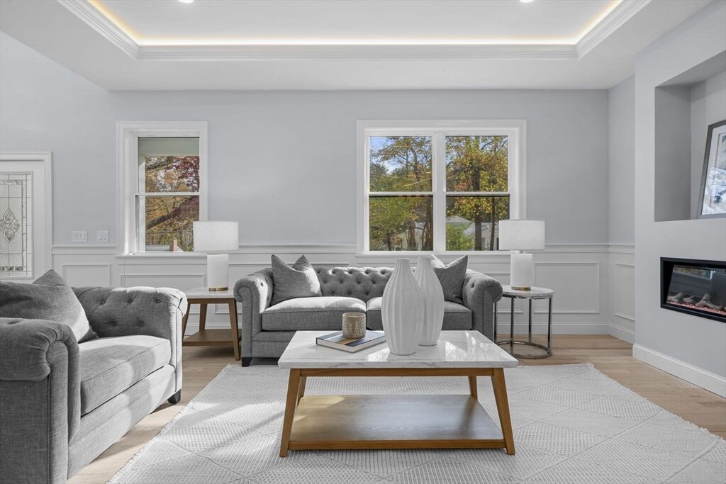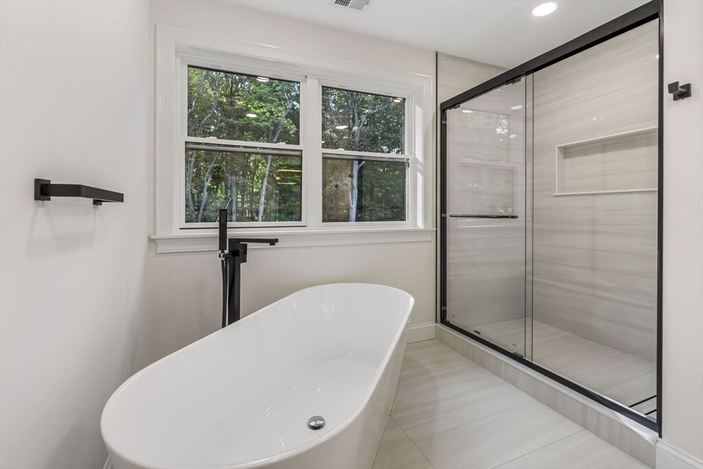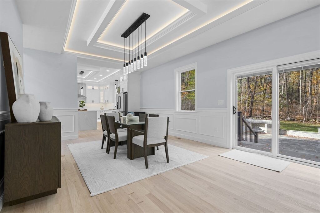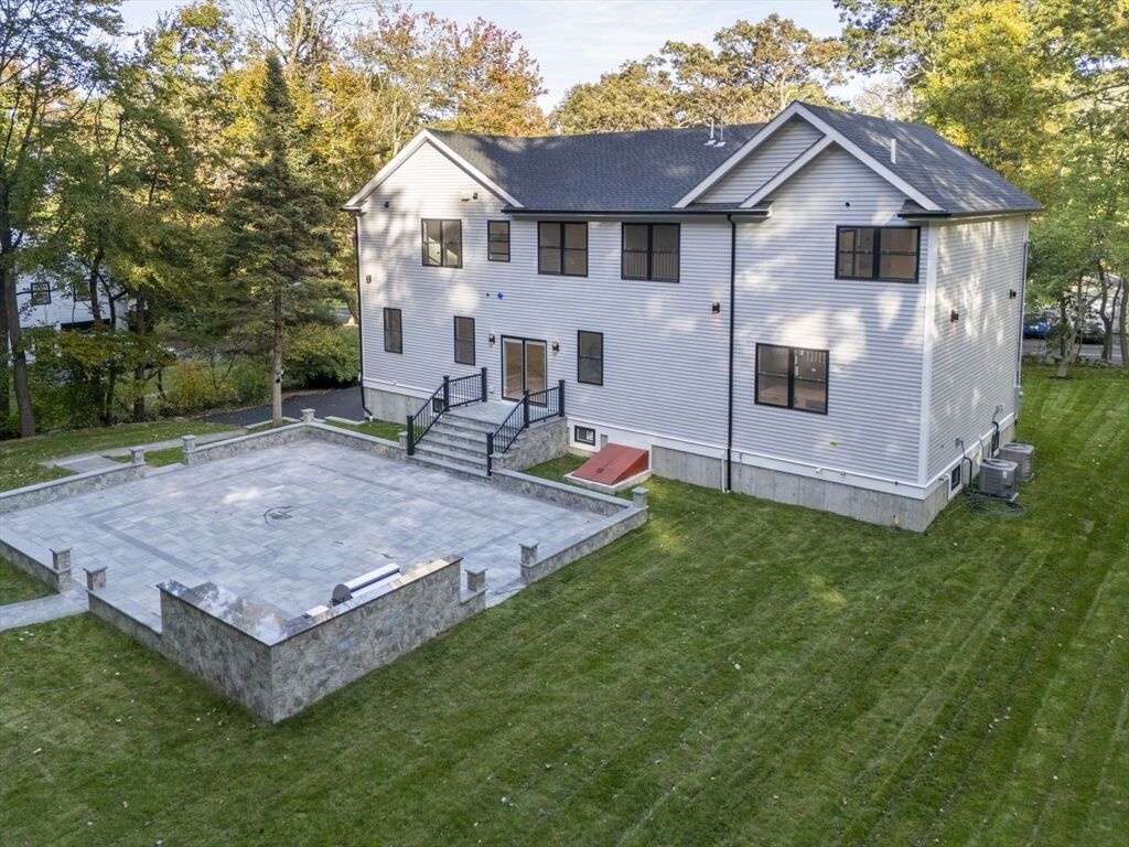 Sophisticated new Colonial blending timeless architecture with modern luxury in a premier Bedford location. Featuring 4BR, 4.5BA, and three statement fireplaces gracing the living room, dining room, and dramatic two-story foyer, this home radiates warmth and refinement. The chef’s kitchen showcases an oversized island, designer cabinetry, and custom lighting that flows into a spacious family room. A first-floor ensuite offers flexibility, while the primary suite impresses with a spa-inspired bath and dual walk-in closets. Outdoor living is equally remarkable with two stone patios, a full kitchen, and lush landscaping. With its distinctive stone façade, curated finishes, and proximity to top schools, shops, dining, and major routes, this residence defines elegant suburban living with easy access to Boston.
