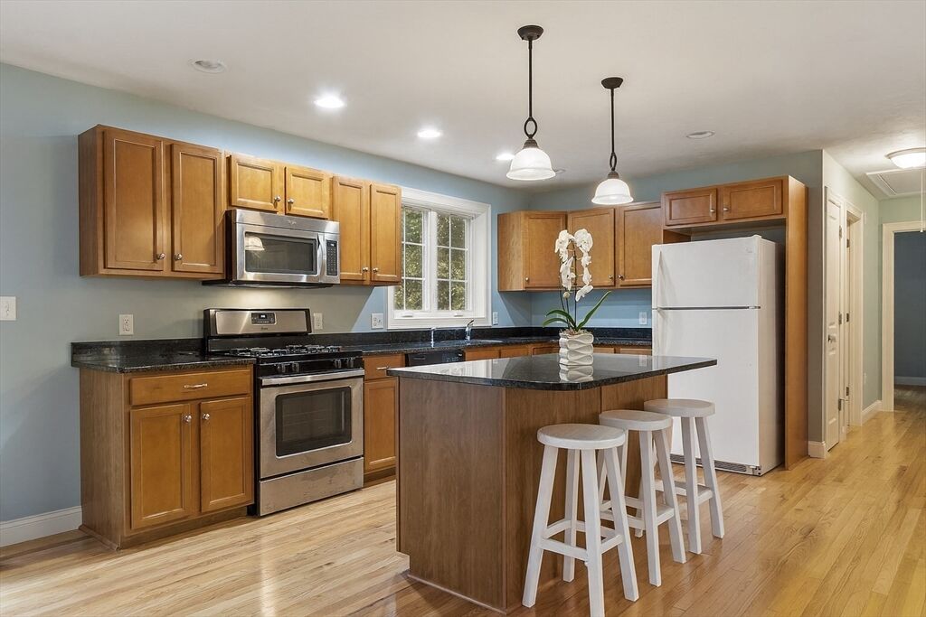 Your private oasis on an acre of land close to both the Littleton and Harvard lines awaits! Hidden from the road in a beautiful, natural setting sits this young Colonial with an excellent layout. An open concept kitchen w/ granite counters, gas range, and island seating leads to the DR with slider to the rear deck and spacious LR w/ gas fplc, The Primary ensuite, guest room, full bath, and laundry complete the main floor. Hardwood floors throughout the main level living spaces. Downstairs, you'll find 2 generously-sized rooms, one with a closet - perhaps a bedroom, home office, media room or a playroom. Access to the 2 car garage. The backyard is very lush and private with no visible rear neighbors. Excellent, convenient location near Littleton shopping, 495, Rt2, historic Harvard, Downtown Ayer restaurants and commuter rail.