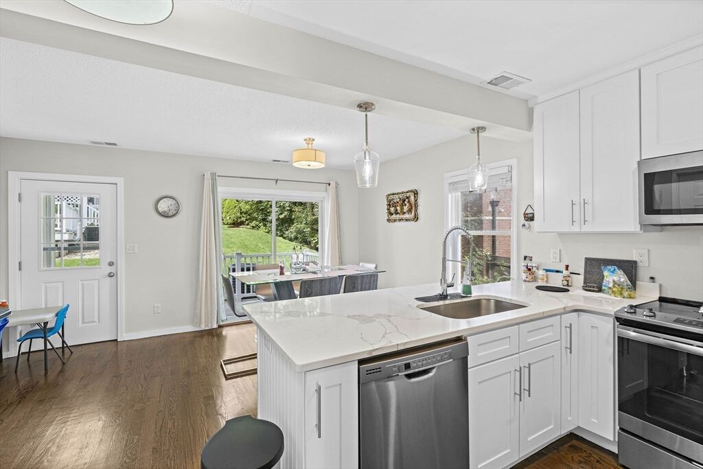 Discover this beautifully appointed 3-bedroom, 1.5-bathroom corner townhome perched on Admiral's Hill in Chelsea. Boasting 4 levels of finished living space, this end-unit combines modern comfort with classic touches. Step inside to discover a gorgeous newer custom white kitchen w/ elegant crown molding, freshly painted throughout, a cozy fireplace, abundant natural light from the home's three-sided exposure. The home offers exceptional storage throughout, with ample closet space & cleverly designed built-ins on every level. Enjoy seamless indoor-outdoor living with a deck off both the dining room and the spacious primary bedroom, perfect for morning coffee or evening relaxation. Located in the professionally managed Admiral’s Hill complex, residents enjoy access to a pool, well-maintained grounds, and the conveniences of the area, including dining, shopping, and skyline views. Don’t miss the chance to own this turnkey townhome in one of Chelsea's most desirable communities.