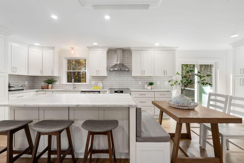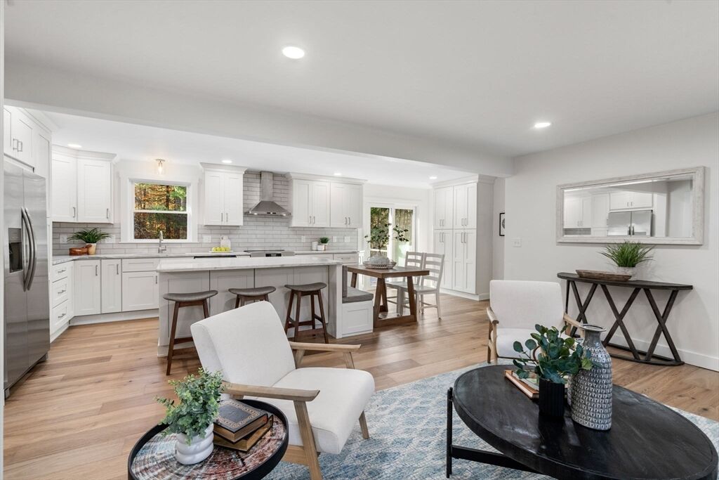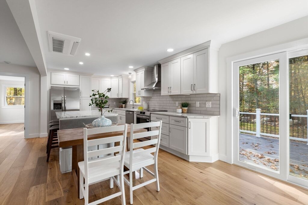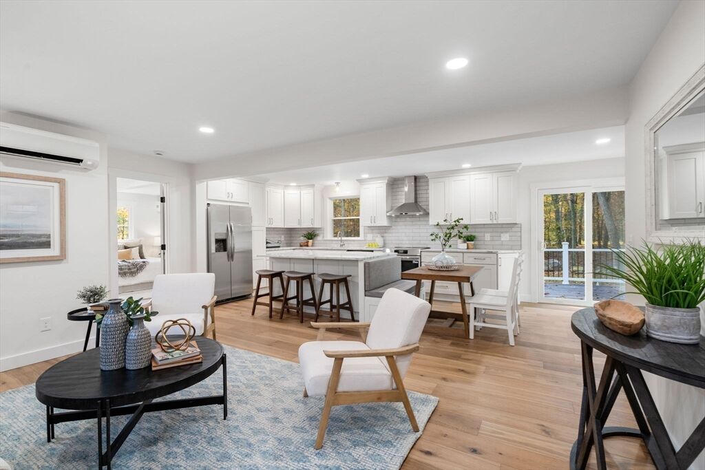 Meticulously renovated ranch in desirable Millis, offering true one-level living with a modern open floor plan. Stunning kitchen with quartzite countertops, abundant cabinetry, stainless steel appliances, breakfast nook, and slider to a spacious deck overlooking a flat backyard. Bright living room with oversized windows. Private primary suite features a beautiful full bath and large walk-in closet. Three additional well-sized bedrooms, another updated full bath, and first-floor laundry complete the main level. The finished walk-out basement provides fantastic bonus space with a third full bath—ideal for guests, home office, or recreation. Major upgrades include brand-new 5-bed septic, new high-efficiency heating and cooling with electric heat pumps, and multiple energy-saving improvements for year-round comfort and lower utility costs. Move-in ready and checks all the boxes—don’t miss this exceptional home!