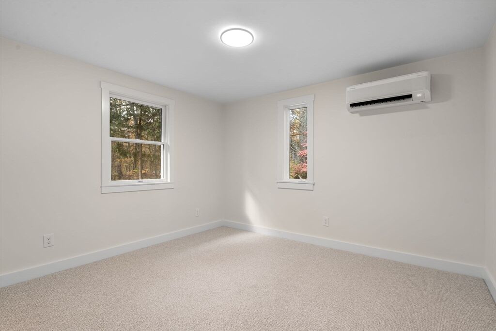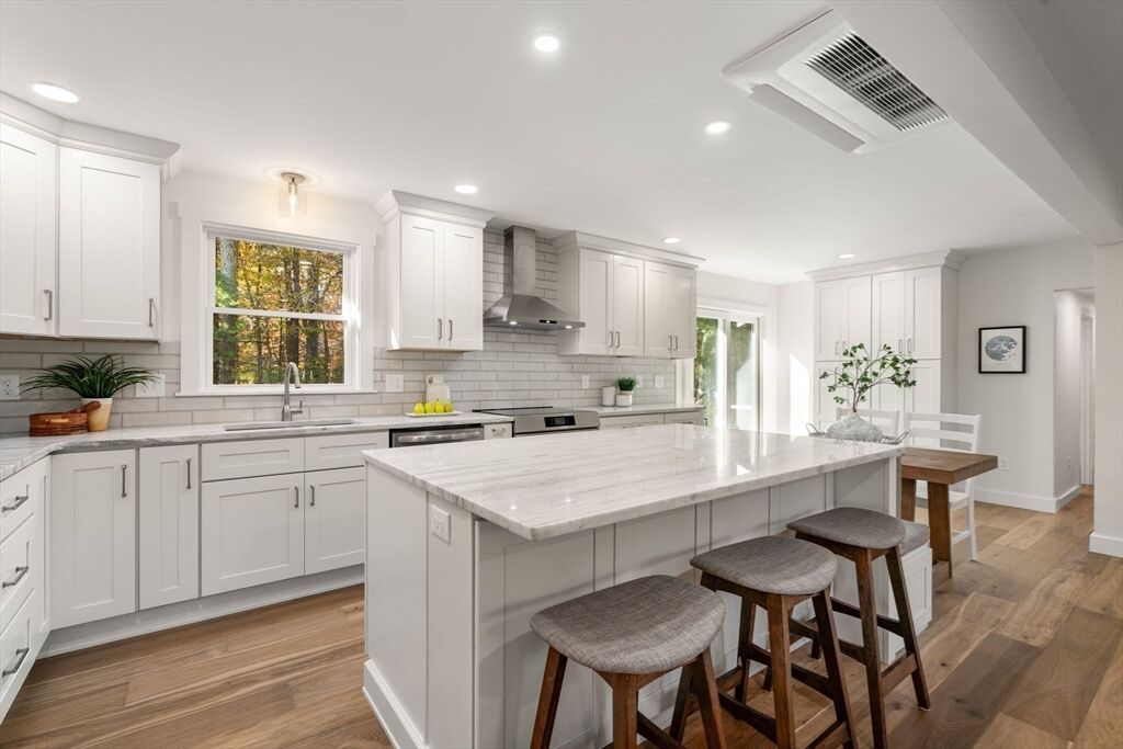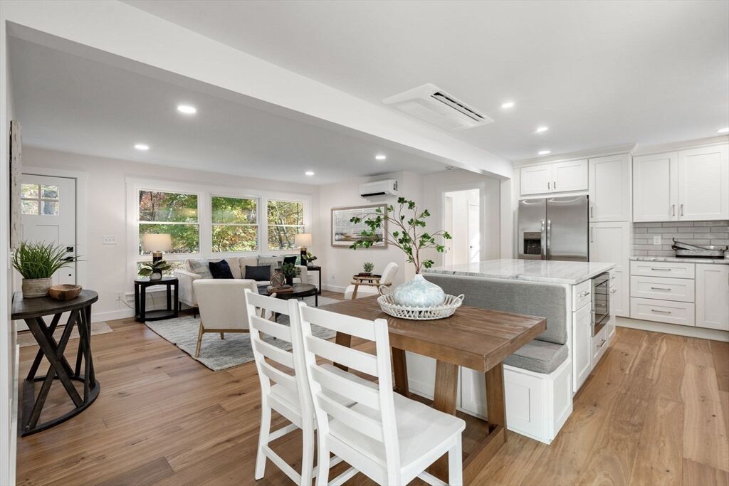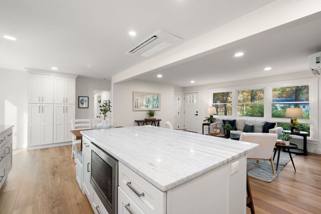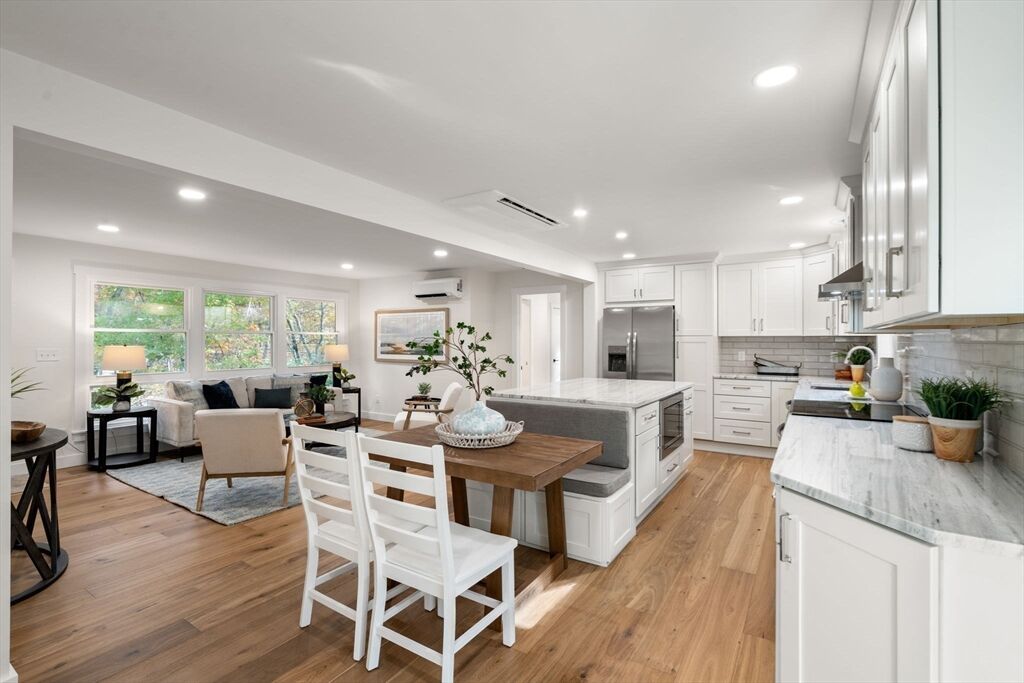 Meticulously renovated ranch in desirable Millis, offering true one-level living with a modern open floor plan. Stunning kitchen with quartzite countertops, abundant cabinetry, stainless steel appliances, breakfast nook, and slider to a spacious deck overlooking a flat backyard. Bright living room with oversized windows. Private primary suite features a beautiful full bath and large walk-in closet. Three additional well-sized bedrooms, another updated full bath, and first-floor laundry complete the main level. The finished walk-out basement provides fantastic bonus space with a third full bath—ideal for guests, home office, or recreation. Major upgrades include brand-new 5-bed septic, new high-efficiency heating and cooling with electric heat pumps, and multiple energy-saving improvements for year-round comfort and lower utility costs. Move-in ready and checks all the boxes—don’t miss this exceptional home!