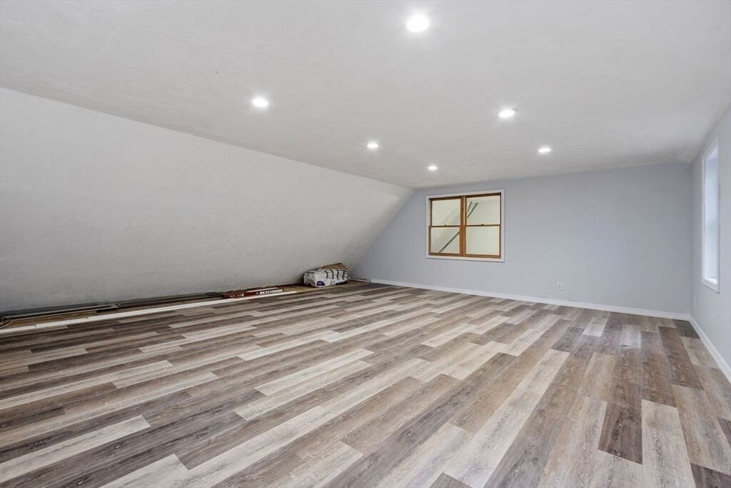 SANCTUARY!!! finds this gorgeous Cobtemporary Cape with soaring ceilings, Enter into the living room cathedral ceilings, wood fireplace and hardwood floors, everythingis light and bright and airy, then on to the open concept dining room with access to deck which runs the length of the house in back, and abuts lots of woods. then U-shaped kitchen which has tile floor and granite counters, and stainless steel appliances. Lastly you'll find 2 bedrooms off the living area. upstairs is your own private en suite primary bedroom with walk in closets and full bath. But the piece de resistance is the heated 3/4 car garage with its own lift which conveys, meander upstairs to a heated room with finished flooring and finished walls, this room could be anything you wish. Easy access to rte 2 for fast commute. Landscaped and irrigation system. True Paradise.