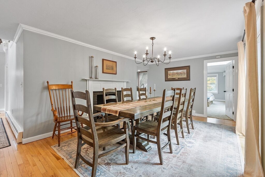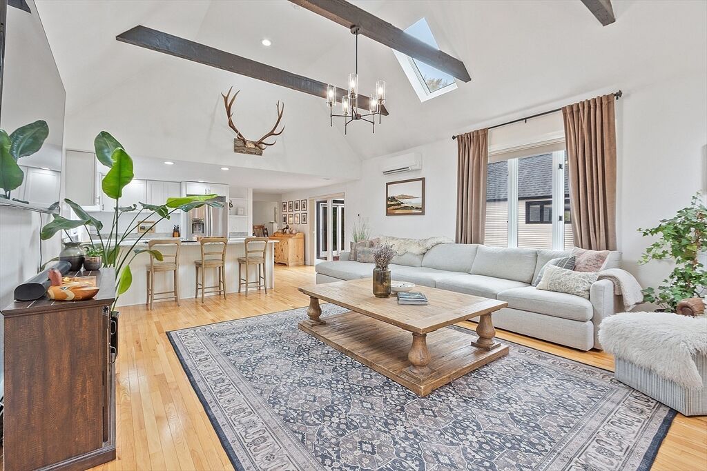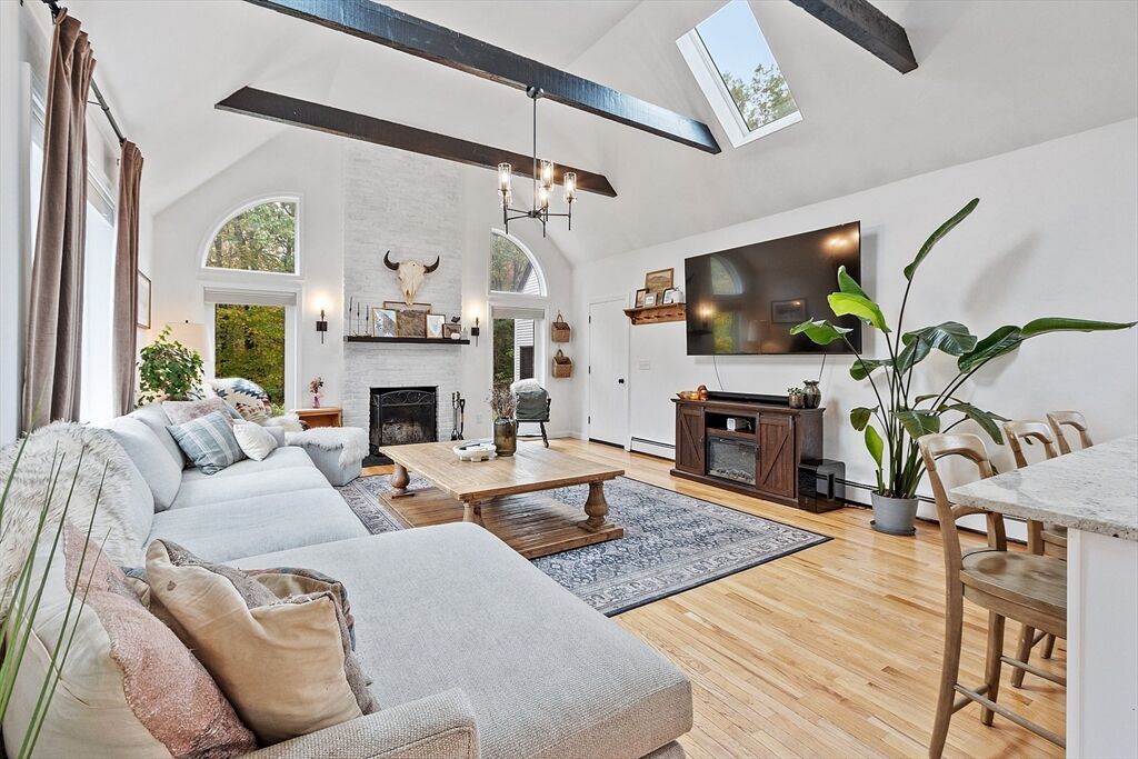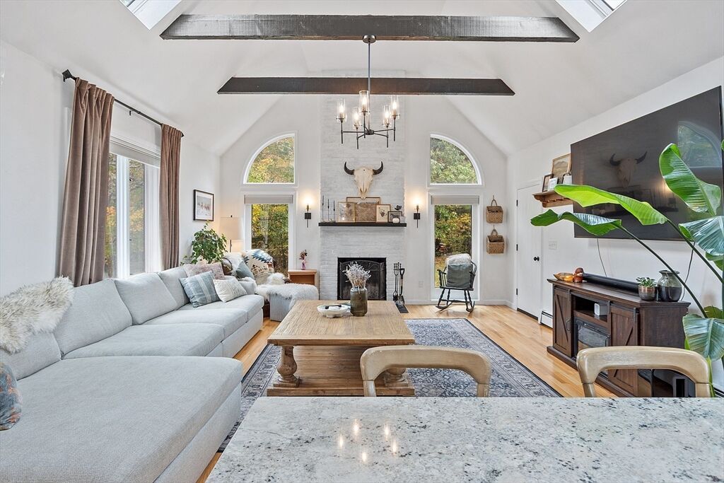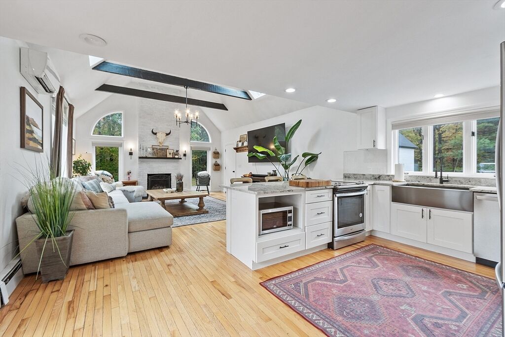 Calling all natural light lovers! This modern farmhouse is flooded w/ natural light. Classic kitchen w/ oversized sink w/ quartz counters, open to the family room, giving ease in entertaining. Vaulted ceilings, wood burning fireplace, and exposed beams create an amazing ambiance. Two additional fireplaces in the generous dining area with seating for 8 and formal living room. Wet bar servicing the dining & formal living rooms. First floor primary suite w/ room for a king sized bed, cedar walk in closet, deep soaking tub and a SAUNA + free standing tiled shower. Second floor has 2 large Bedrooms and a full bath. Huge yard w/ gorgeous tree line and flat yard of which to play. 3 car garage w/ room for all your toys + generously sized 1 bedroom in-law apartment above w/ it’s own entrance and private outdoor space.