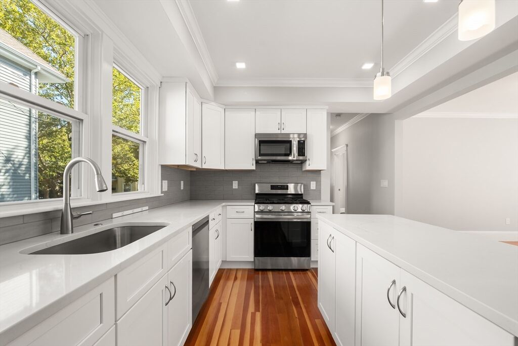 HIGHLY DESIRABLE EAST WATERTOWN LOCATION NEAR SHOPS, RESTAURANTS, ARSENAL YARDS, AND HARVARD SQUARE BUS! This two bedroom first floor home on a tree lined street has been recently beautifully renovated with a white quartz and stainless kitchen with gas cooking and an island to gather! This home features gas heat, air conditioning, in unit laundry, newer windows, private storage room in basement, driveway parking and common yard space. This is the one you have been waiting for!