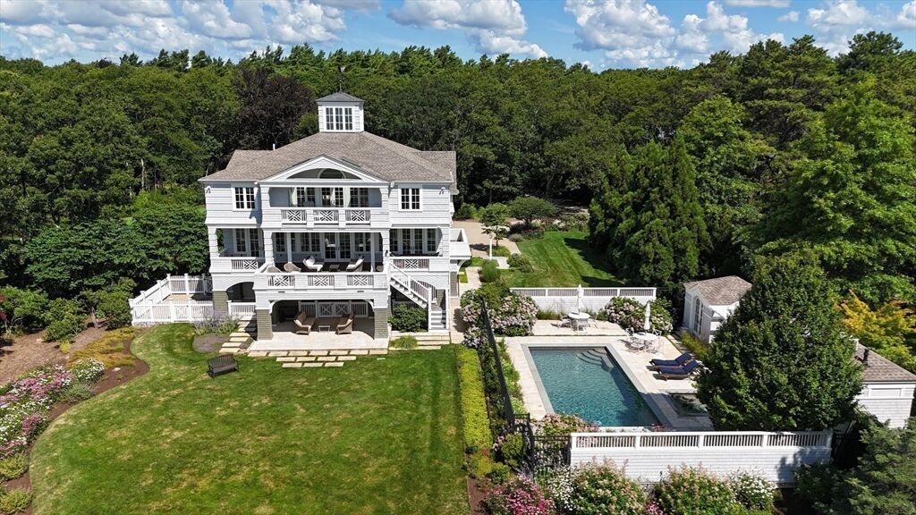 Welcome to Marion’s Converse Point, an exclusive waterfront enclave on Buzzards Bay. Set on 2.77 acres, this 5,030 sq ft residence offers breathtaking views of Buzzards Bay and effortless coastal living. Built in 2012 and impeccably maintained, this home features 5 bedrooms, 4.5 baths, an elevator, and multiple decks showcasing the sweeping views. The chef’s kitchen features premium appliances and custom cabinetry, flowing to sunlit living spaces ideal for entertaining. The primary suite blends modern luxury with timeless design with its spa-like custom bath with soaking tub, oversized shower, double vanity, and walk-in closet. Outside, enjoy a heated swimming pool, hot tub, and fully equipped pool cabana. This stunning this property truly defines waterfront elegance in Marion’s most exclusive community.