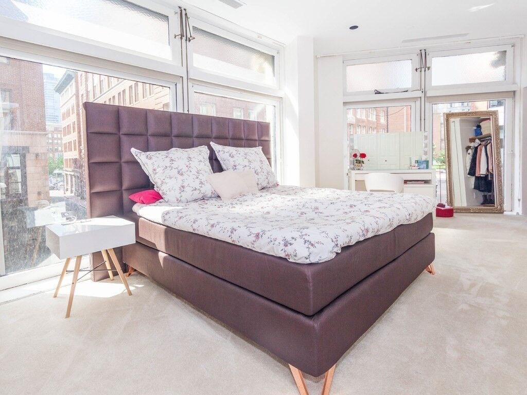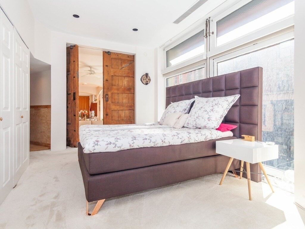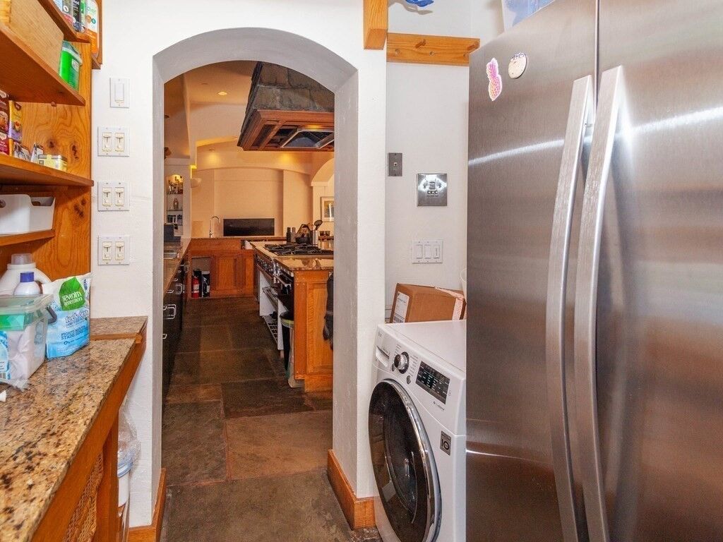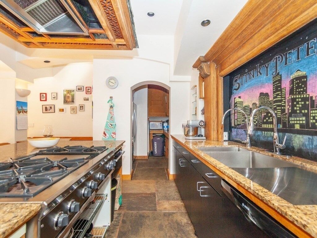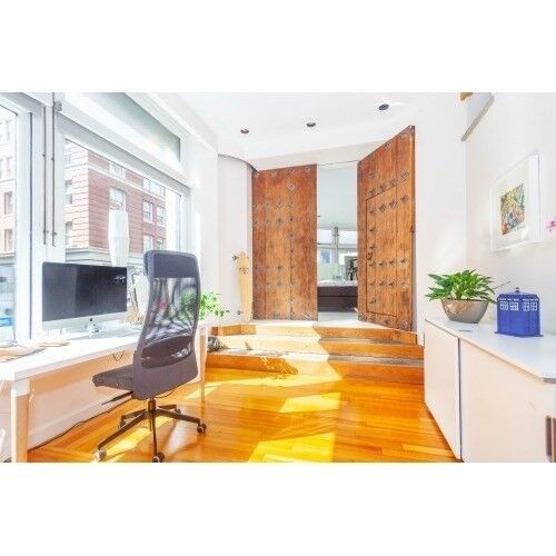 FANTASTIC & UNIQUE LOFT 1,700± SF Dramatic light filled corner loft with soaring floor-to-ceiling windows, original polished fir floors, and open layout is ideal for working from home and entertaining.Chef’s kitchen with granite countertops anchors the space with a large salvaged fireplace mantel. A handcrafted oak pantry houses the refrigerator and a washing machine. Antique sliding bedroom door-in-a-door creates a “wow” factor as you enter the Primary Suite to a windowed bedroom + dressing area with custom closets. Spacious marbled bathroom has separate shower and vintage terracotta soaking tub. Full guest bath by multilevel work/sleeping alcove. New HVAC system installed 2023/24. Common roof deck with skyline views. Prime Leather District location, close to South Station and the New Ritz Carlton Tower, and acclaimed downtown Boston dining.
