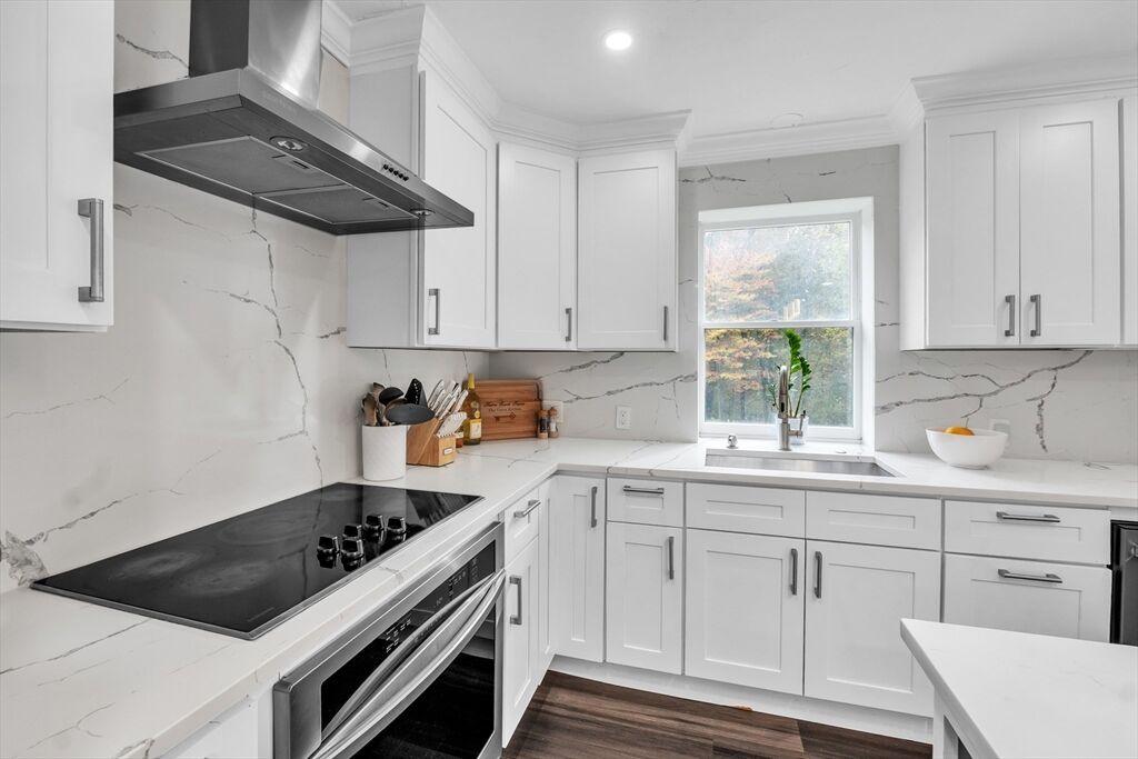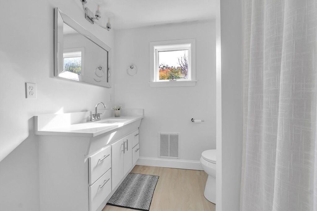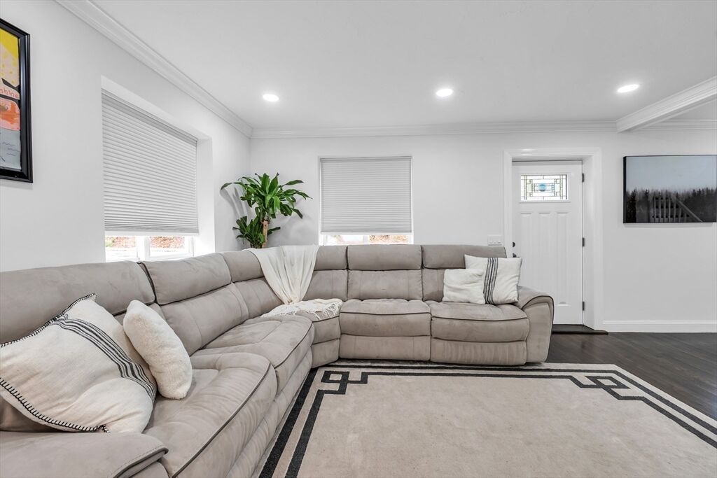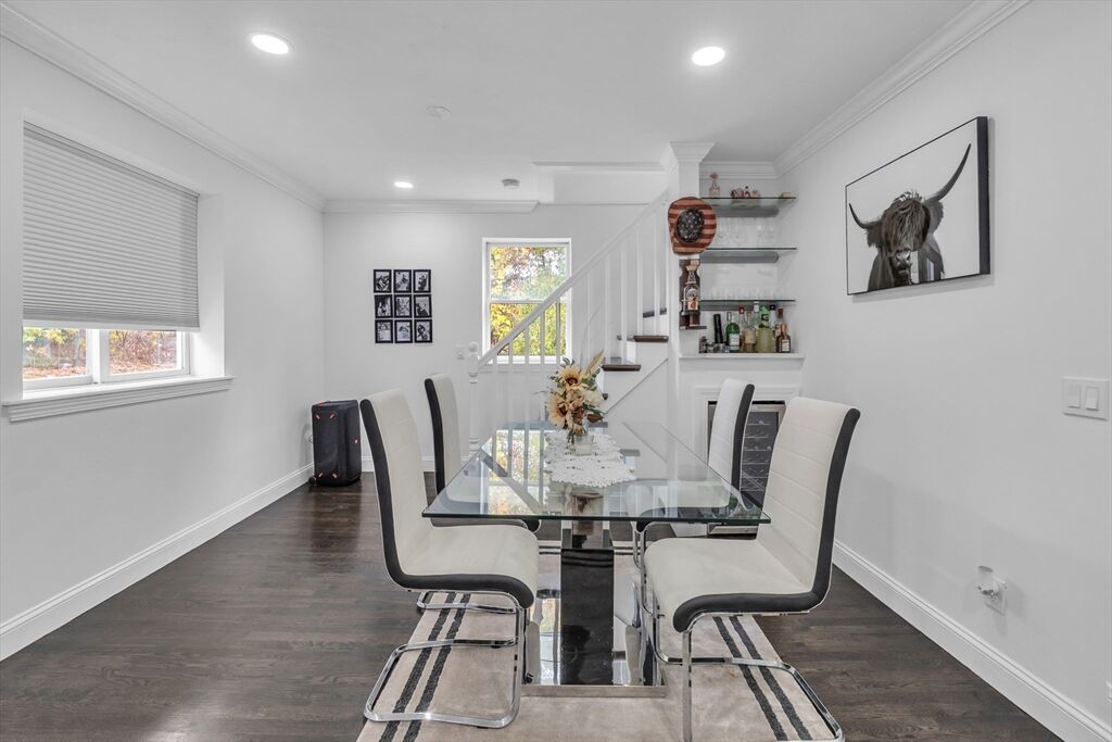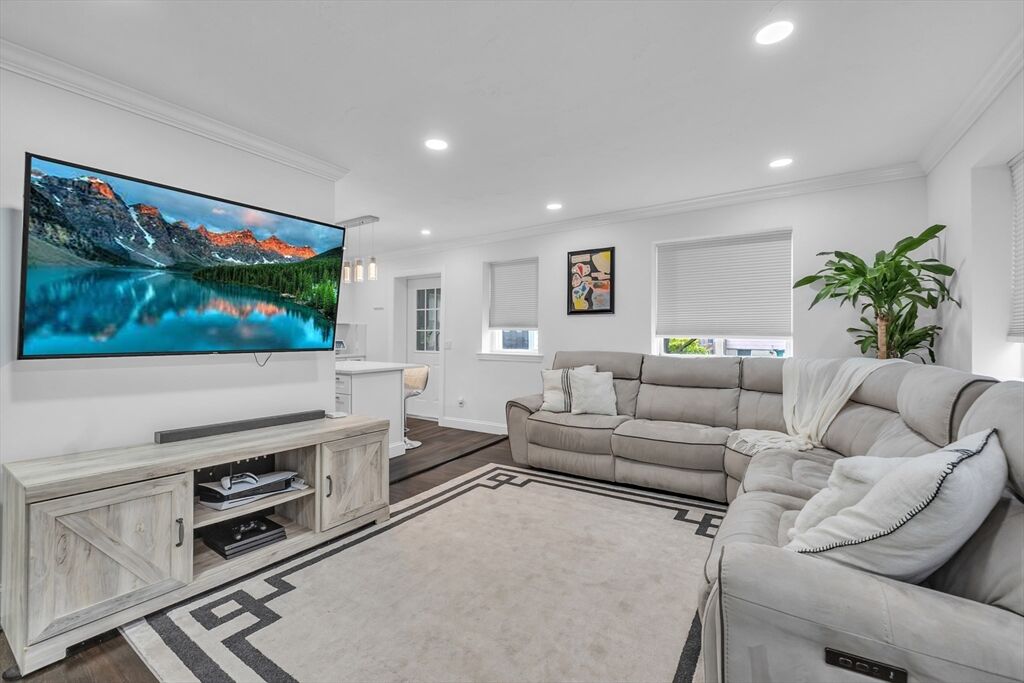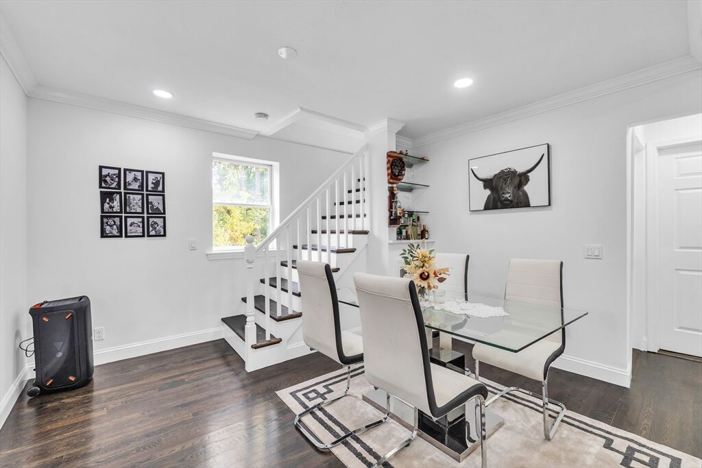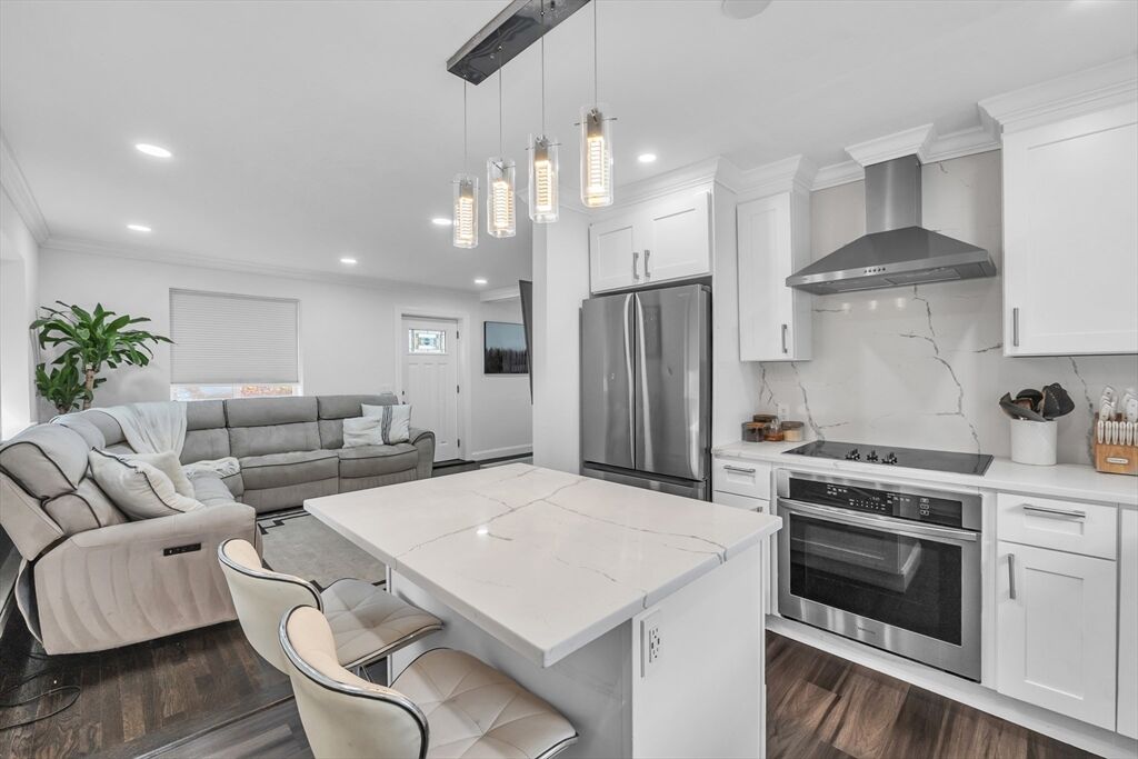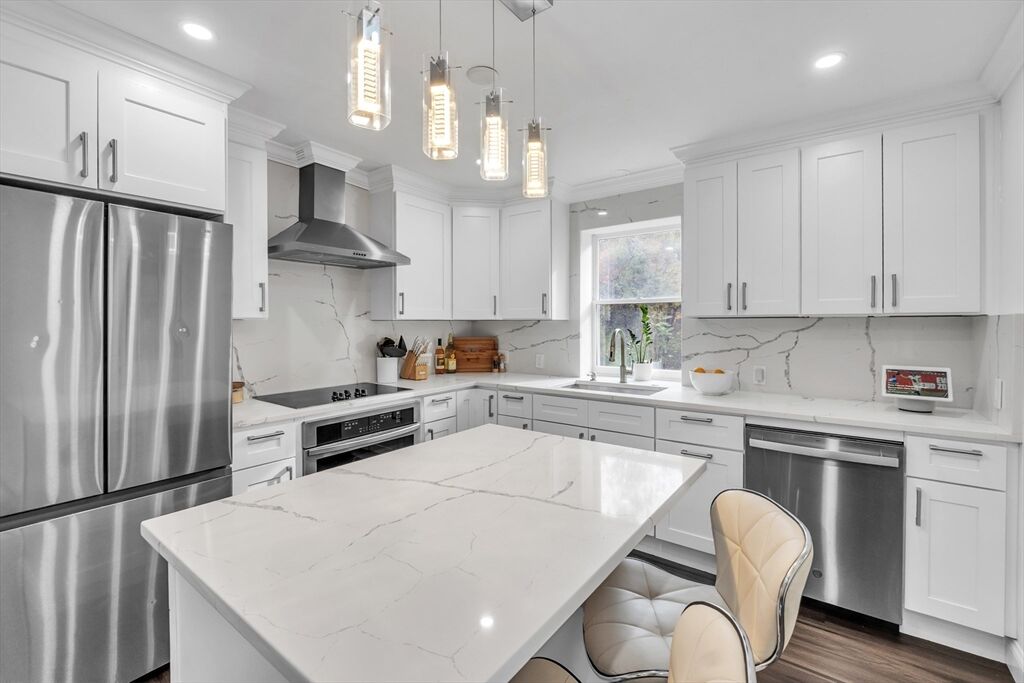 Perfectly located near Dorothy Pond, this beautifully updated home offers the ideal blend of modern comfort & timeless charm! Enjoy all-new flooring & lighting throughout, a fully remodeled bath, & refinished hardwood floors that flow from the inviting living room to the formal dining area w/ a built-in wine fridge. The fully remodeled kitchen stands out w/ its center island, upgraded cabinets & counters, & elegant pendant lighting that ties the space together! Upstairs, 3 spacious bedrooms offer plenty of closet space, while a large hall closet provides add'l storage. The updated lower level adds versatility w/ an expansive family room & home office opening to a cozy patio. Conveniently located off the driveway, the mudroom provides access to both the kitchen and the finished basement, while outside, a well-kept yard and two driveways offer ample parking. Close to I-90 and minutes away from amenities, this home offers comfort in a peaceful & unbeatable location. Home Sweet Home