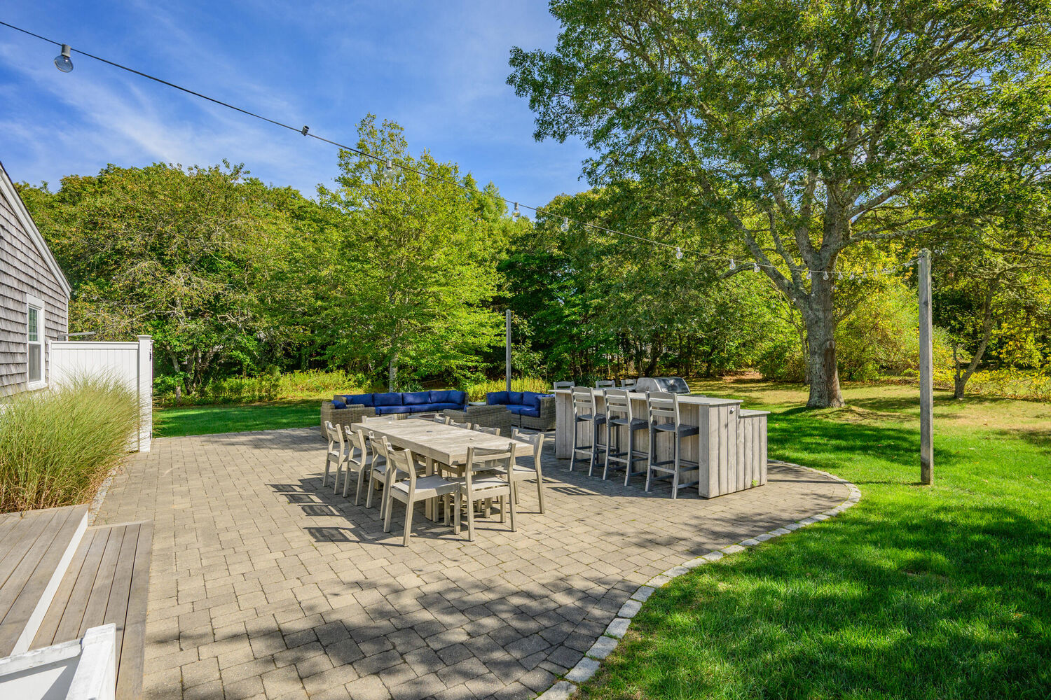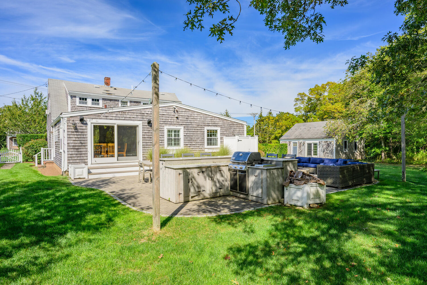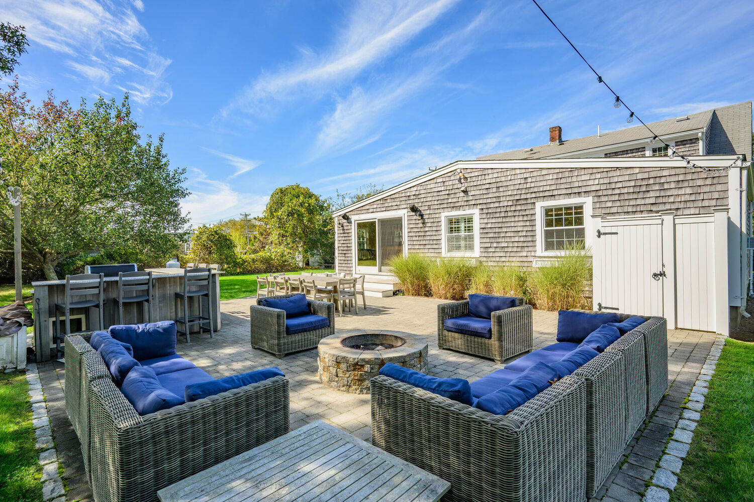 Dream retreat in Harwich for year-round living, seasonal getaways, or a rental investment property with a history of proven income. This home presents an ideal blend of comfort and style with great curb appeal, sitting on a 1.1 acre lot, it offers 5 BR, 3 BA across 2,592 sq ft of living space. Inside discover a spacious living area with hardwood floors that flow seamlessly throughout the home. The updated kitchen opens to an outdoor patio, expanding the living space outdoors. The main floor hosts two guest rooms and a primary ensuite with private bath, ensuring privacy and comfort. Upstairs, a family room, office, and two additional guest rooms provide ample space for memorable gatherings. The expansive outdoor area is perfect for entertaining, boasting large seating area with fire pit, granite bar/grilling station with bar stools, large dining table and a shower. The large green lawn invites summer games, while a detached 700 sq ft renovated barn converted into a recreation room offers a cozy retreat for rainy days or movie nights. Conveniently abutting the bike trail, close to Harwich Center and just a short drive to downtown Harwich Port and the Nantucket Sound beaches.
