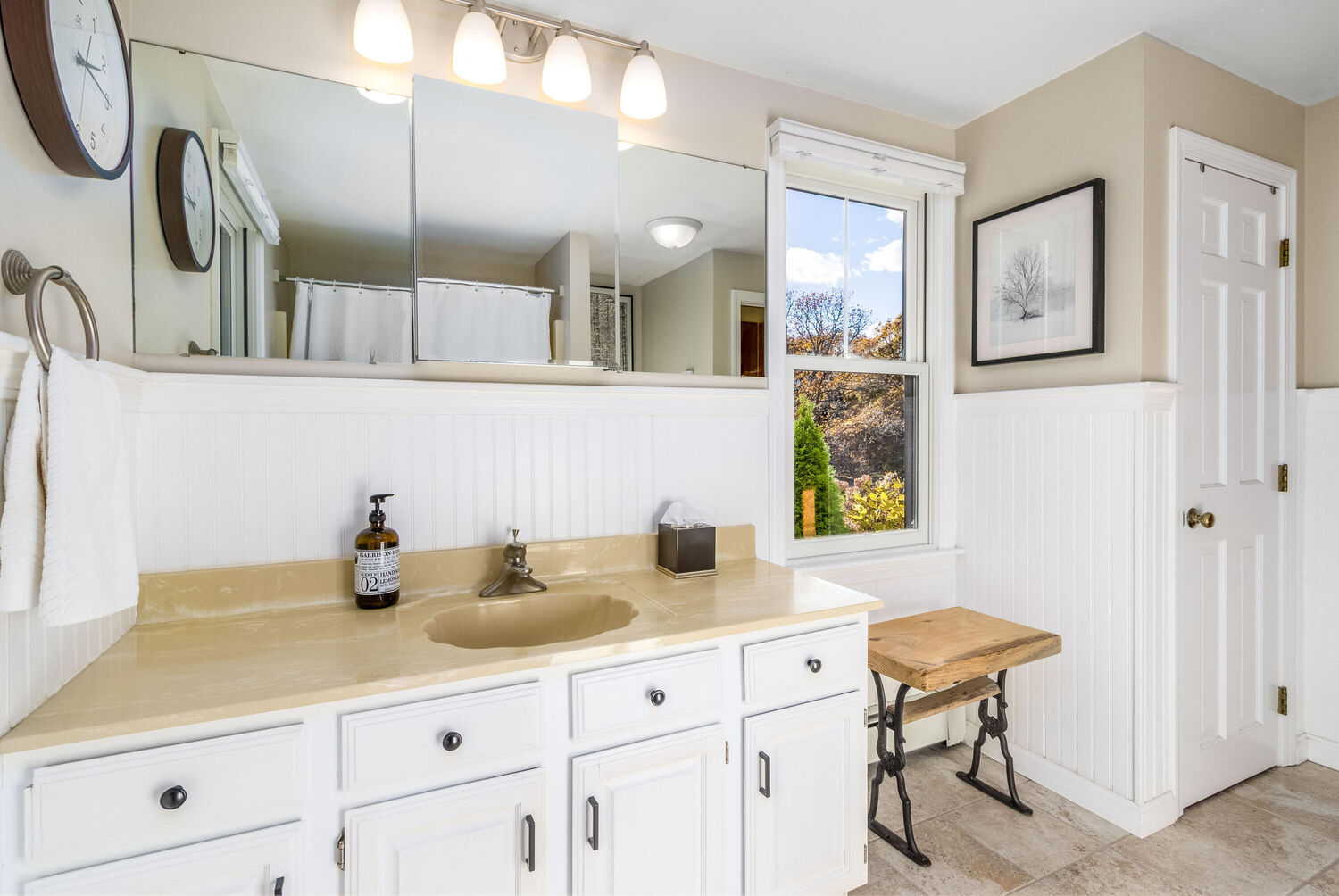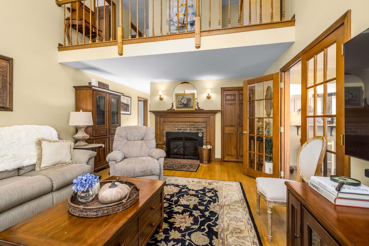 Welcome to this expansive and pristine Cape-style home in the beloved Hunter Hill Estates, where abundant windows and sliding glass doors seamlessly blend the beauty of the outdoors with the comfort of indoor living. From the moment you arrive, it's clear that the owners have meticulously maintained and thoughtfully updated every corner of this property. Elegant stone walls, manicured lawns, and winding stone pathways lead you to this inviting residence.Inside, gleaming hardwood floors and rich wood trim echo the natural surroundings just beyond your back door. The well-equipped kitchen opens to a welcoming dining area, flanked by sliding glass doors on two sides that lead to a spacious back deck. Through a set of French doors, you'll find the breathtaking living room, where cathedral ceilings and two levels of windows create a light-filled, serene atmosphere. A gas fireplace adds both warmth and ambiance, making this a cozy retreat on cooler evenings.The first floor also features a lovely primary bedroom, an oversized full bathroom, and a versatile room between the kitchen and garage - affectionately called the ''breakfast room'' by the owners - ideal as an entryway, mudroom, or sunroom.Upstairs, two additional bedrooms share a hallway and balcony overlooking the living room, offering stunning views of the backyard. A second full bathroom provides convenience and privacy for family or guests.A generous finished basement (providing an additional ~1,200 sf) with laundry and walkout access enhances the home's livability, while the extra-large two-car garage provides ample room for vehicles, storage, or a workshop. Enjoy the peaceful and private backyard from your tiered deck, beyond which an outdoor shower offers an opportunity for rejuvenation.Recent updates include most windows and exterior doors, a new electric panel, refreshed siding and trim, a complete hardscape renovation, and more.Classic yet full of surprises, this exceptional Cape offers timeless appeal, thoughtful design, and modern comfort - inside and out.Septic has passed Title 5.