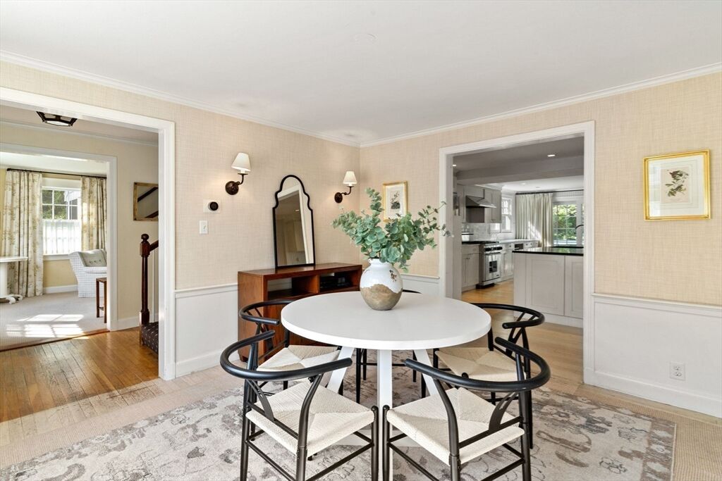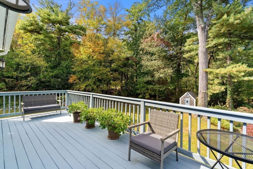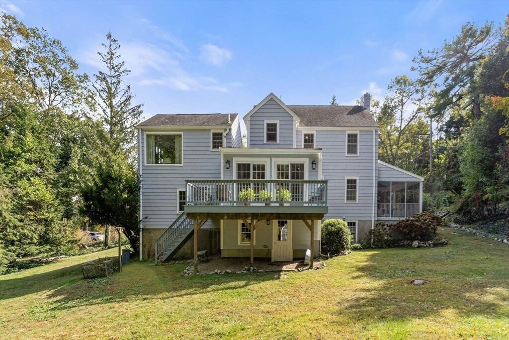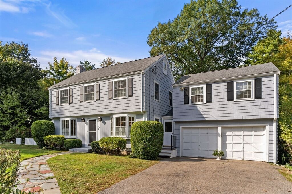 Move right in to this charming 4 bedroom 2.5 bath Colonial in desirable Islington location. Stunning original millwork, custom built-ins & hardwood floors throughout the home. Sun filled front to back living room w/ fireplace & custom bookcases, leads to sunroom. Dining room opens to expanded kitchen w/ oversized island featuring marble & honed granite counters, ss appliances, pantry, eat-in nook, double sliders out to deck overlooking the lush private yard. Half bath & mudroom w/ separate entrance complete the first floor. Over the garage is an ensuite w/ spacious bedroom, stunning full bath & deep closet. Second floor features primary bedroom with window seat & two closets, two additional bedrooms, one w/ walk-in closet and exquisite full bath w/ custom double vanity & marble basketweave flooring.Lower level with mechanical room, laundry, playroom & walk out storage room to backyard. Minutes to commuter rails, highway, Legacy Place, Islington Center & Hale trails.