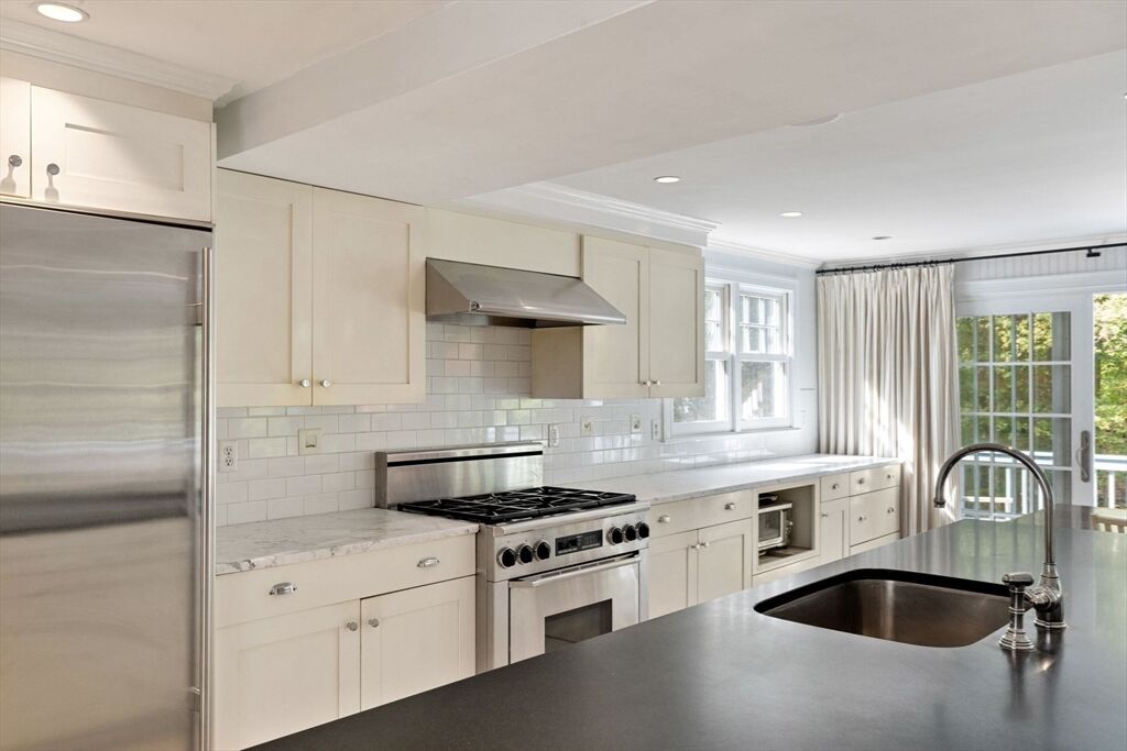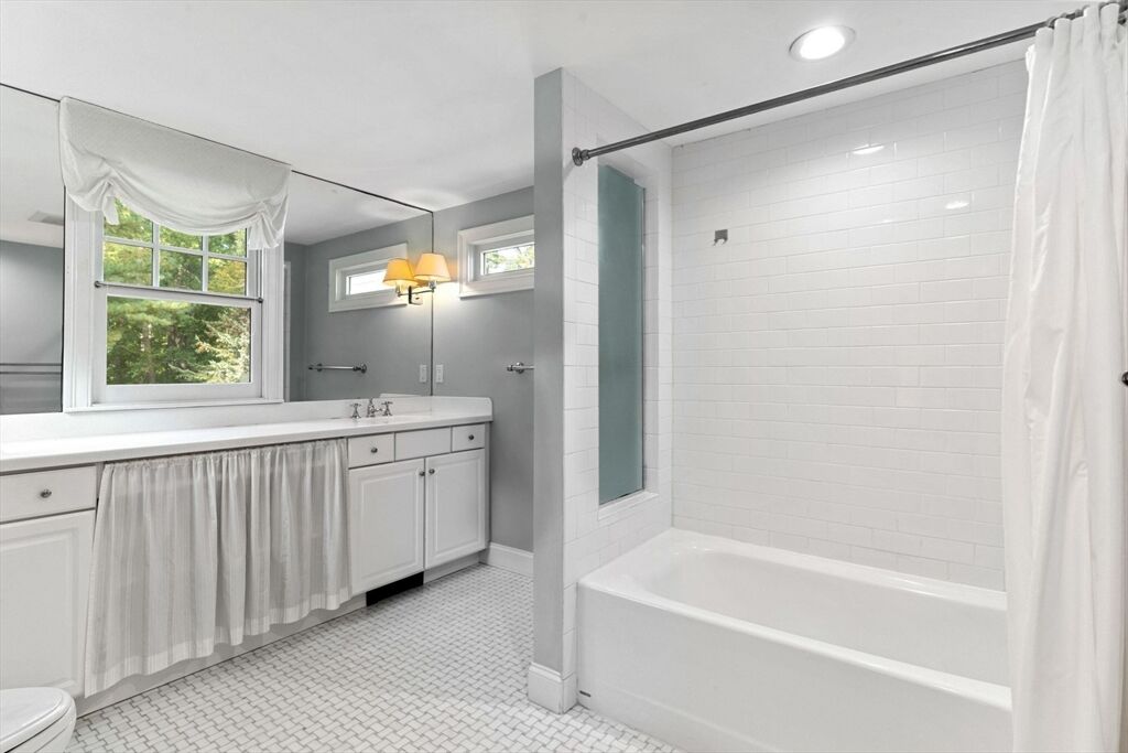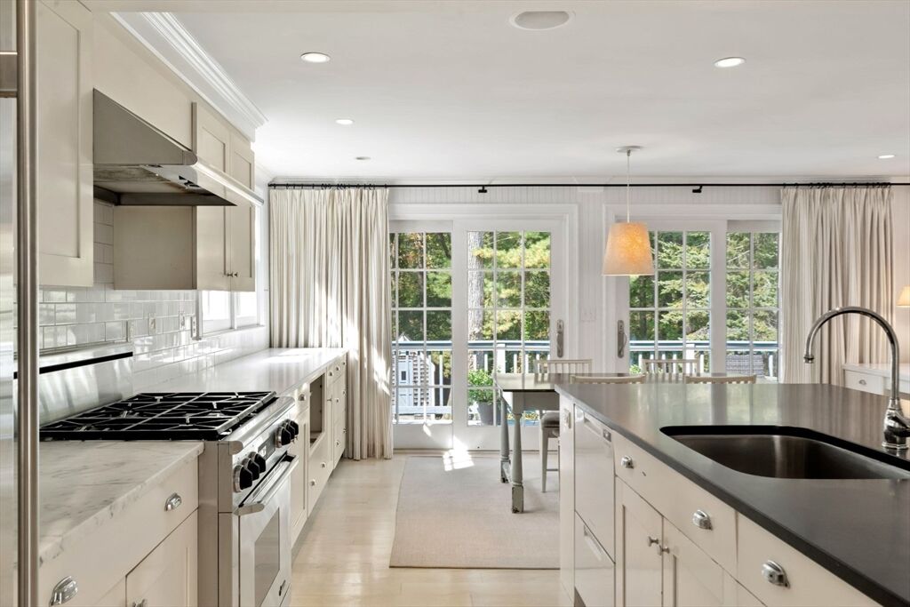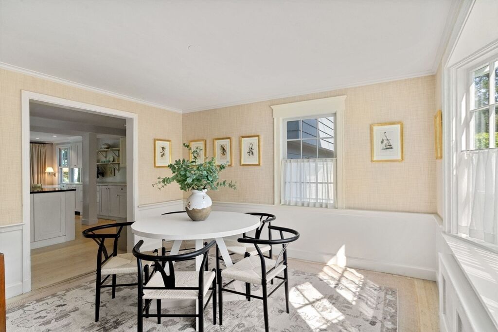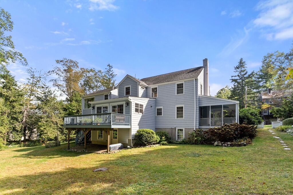 Move right in to this charming 4 bedroom 2.5 bath Colonial in desirable Islington location. Stunning original millwork, custom built-ins & hardwood floors throughout the home. Sun filled front to back living room w/ fireplace & custom bookcases, leads to sunroom. Dining room opens to expanded kitchen w/ oversized island featuring marble & honed granite counters, ss appliances, pantry, eat-in nook, double sliders out to deck overlooking the lush private yard. Half bath & mudroom w/ separate entrance complete the first floor. Over the garage is an ensuite w/ spacious bedroom, stunning full bath & deep closet. Second floor features primary bedroom with window seat & two closets, two additional bedrooms, one w/ walk-in closet and exquisite full bath w/ custom double vanity & marble basketweave flooring.Lower level with mechanical room, laundry, playroom & walk out storage room to backyard. Minutes to commuter rails, highway, Legacy Place, Islington Center & Hale trails.
