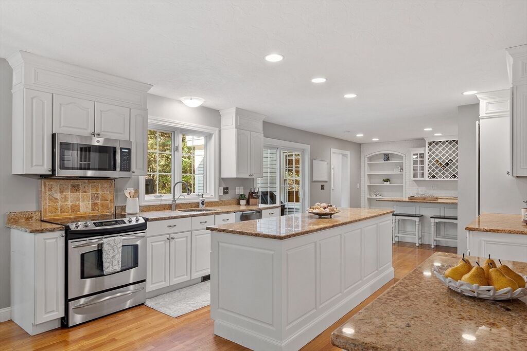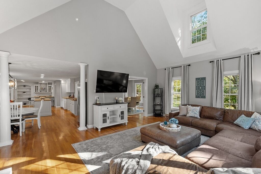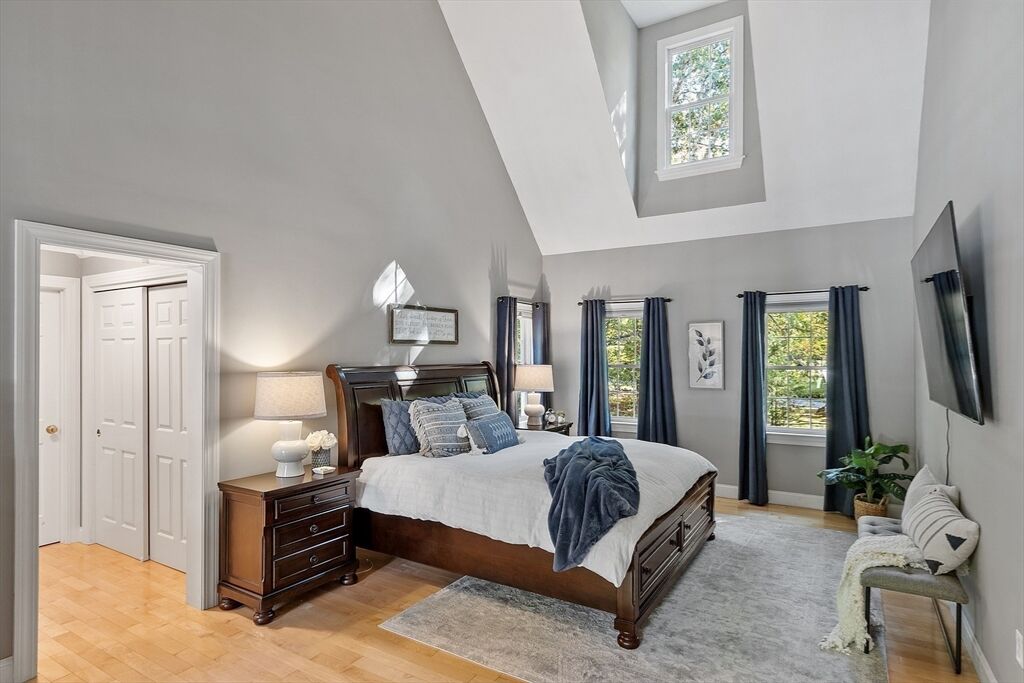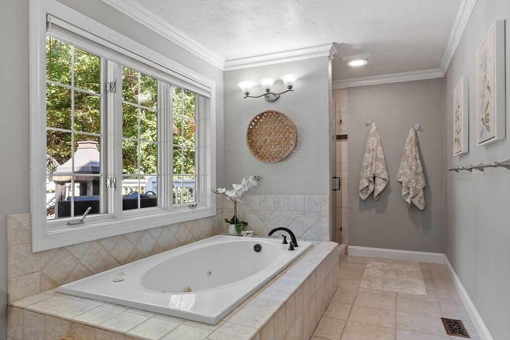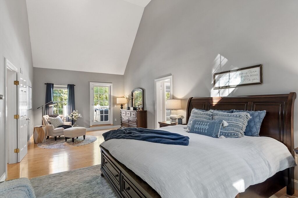 Experience the perfect harmony of elegance, comfort, and craftsmanship in this expansive four-level executive Colonial set in a popular cul-de-sac neighborhood. Sunlight fills each room, accentuating the hardwood floors, cathedral ceilings, and timeless architectural details. The stunning eat-in kitchen showcases granite countertops, stainless steel appliances, an oversized island plus a wet bar, and it flows seamlessly into the impressive family room with a wood-burning fireplace and soaring ceiling. Sliders open to a fully fenced backyard with a patio, fire pit, hot tub, and wooded backdrop—ideal for entertaining or relaxing in style. The luxurious primary suite offers a cathedral ceiling, walk-in closet, spa-like bath, and private balcony. The finished lower level enhances versatility with a custom speakeasy, game room, and fitness and laundry areas. Explore the floorplans, photos and video, then discover firsthand the exceptional lifestyle this home provides!