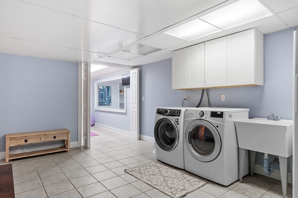 Laundry | Flooring - Stone/Ceramic Tile Electric Dryer Hookup Washer Hookup Lighting - Overhead Sink In Basement |