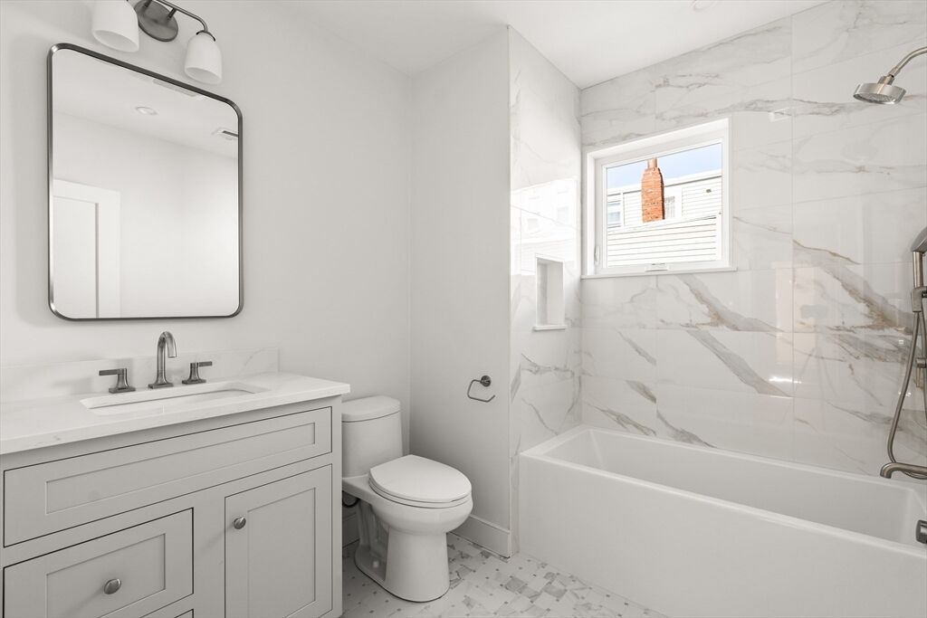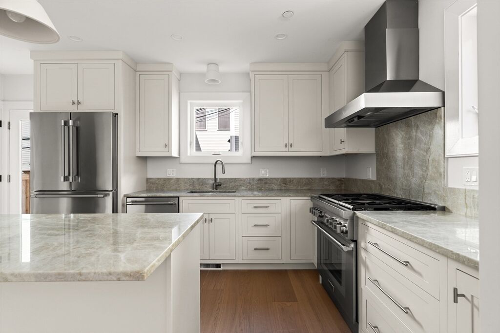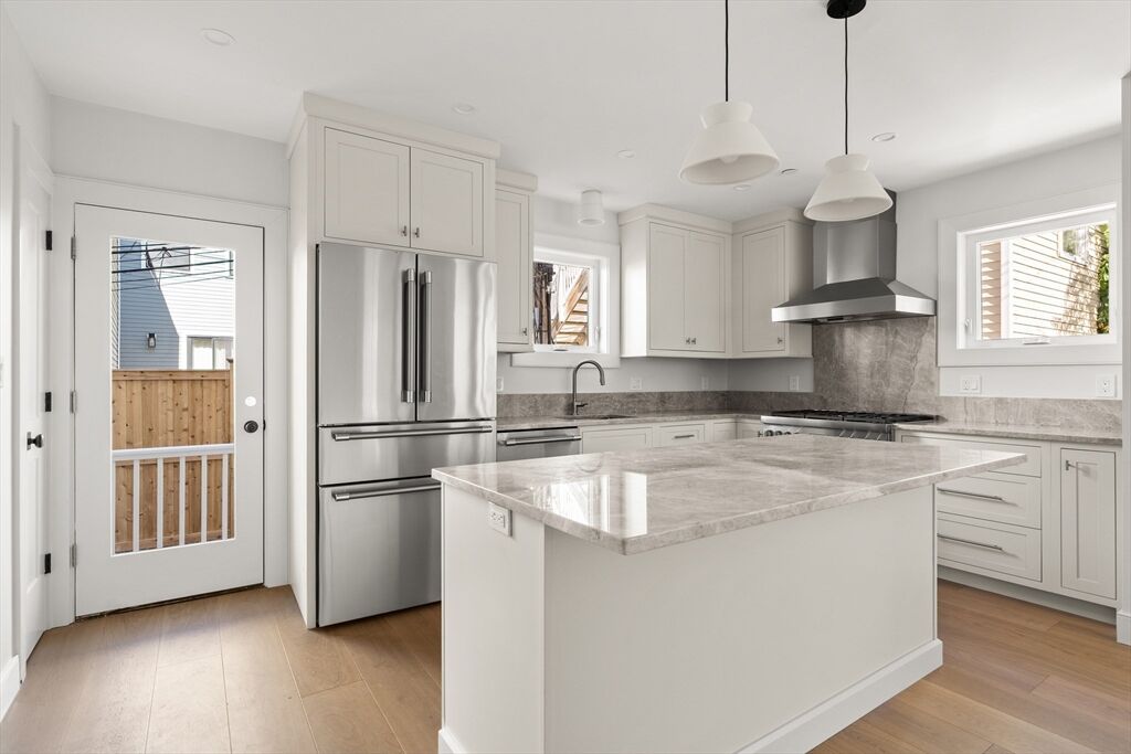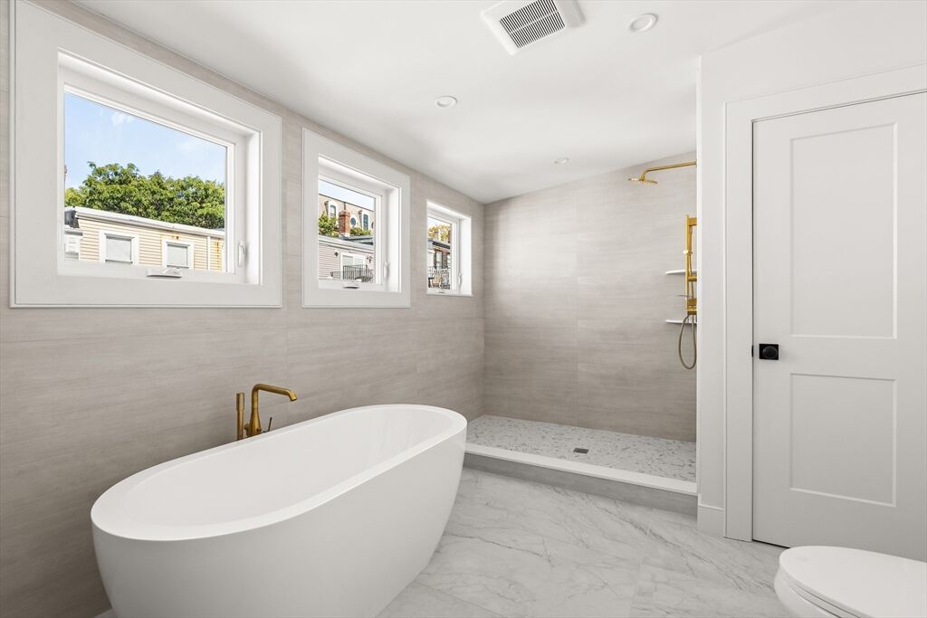 Stunning ground-up new construction. Tucked away at the end of a quiet dead-end street, this thoughtfully designed SF home offers 3 bed/3.5 bath, spanning 4 levels of living space. Enjoy wide plank white-oak hardwood floors throughout, a chef’s kitchen with high-end finishes and 3 sides of natural light exposure. The 2nd level features 2 good sized bedrooms, in-unit laundry and a full bathroom, equipped with a deep tub. The top level is dedicated to the primary suite with beautiful cathedral ceilings, a fully built out walk-in closet and a large spa-like bathroom. The full basement offers another full bathroom and a flexible space; perfect for a gym, home office, or media room. Step outside to your private, fenced-in back patio, ideal for relaxing or entertaining. Located just minutes from restaurants, playgrounds/parks, the MBTA and all that Charlestown has to offer.