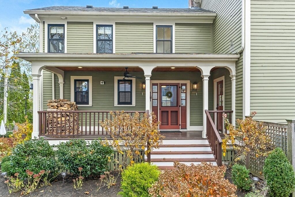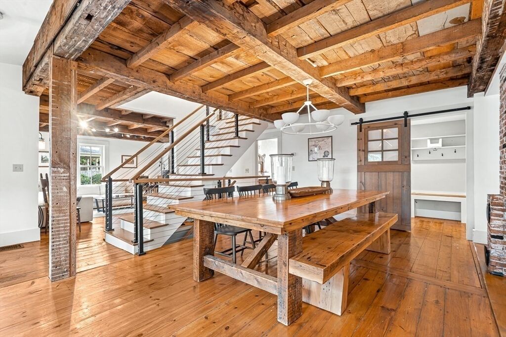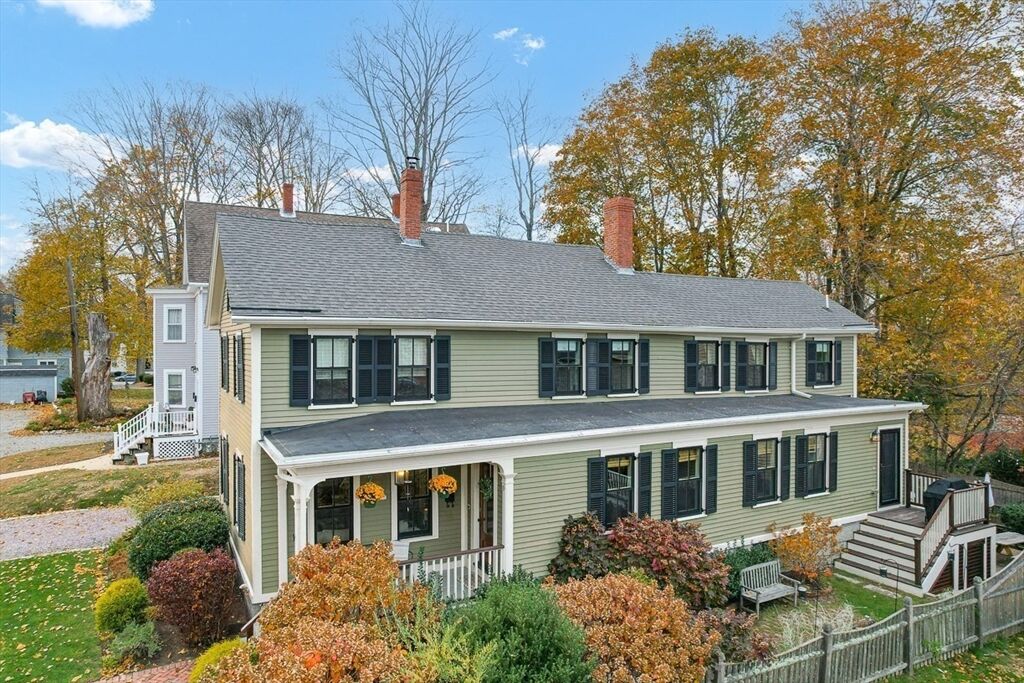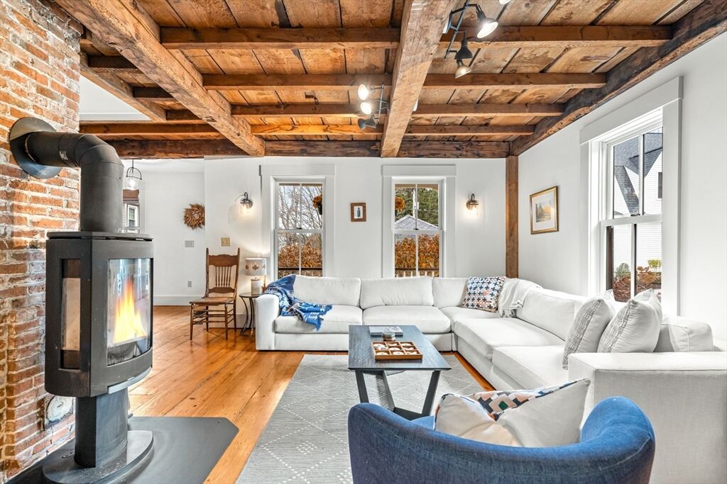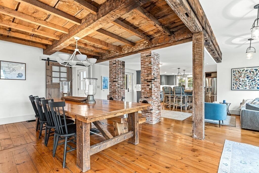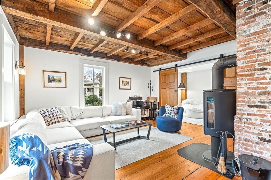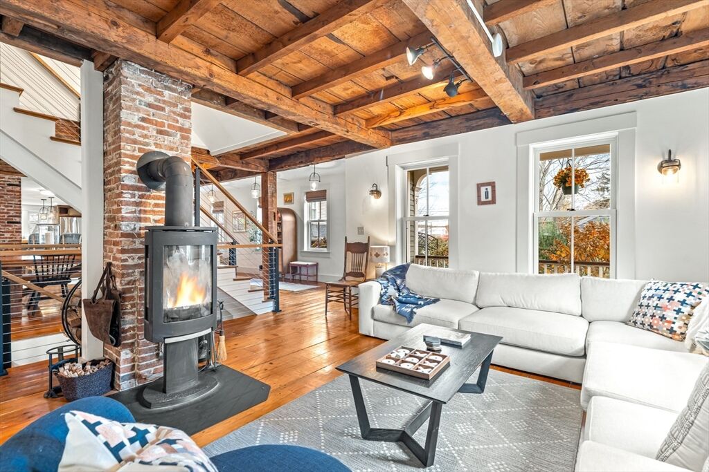 A remarkable fusion of history & modern luxury located in the heart of Downtown Andover. Enjoy the convenience of walking to local cafés, shops, & restaurants. The open-concept design flows seamlessly, highlighted by exposed brick, rich wood beams, & impeccable craftsmanship throughout. The kitchen boasts a walk-in pantry, an impressive center island, high-end appliances, & spacious mudroom designed for everyday functionality. Gorgeous wide-pine floors flow throughout, extending from open dining area into the inviting living rm, which includes a versatile adjoining office or playroom. Second level bedrms include the ensuite, convenient laundry rm, additional full bath & ample closet space. Finished LL w full bath great for guest suite, family rm, home gym, etc. Two covered porches, a beautifully landscaped patio, and a charming garden area create an inviting outdoor retreat. Ideally situated in the highly sought-after Bancroft School District.
