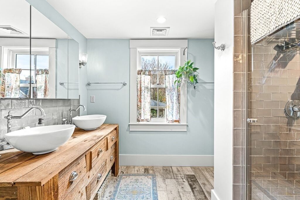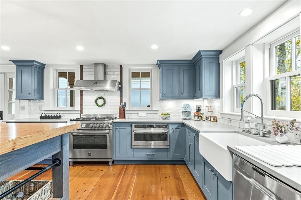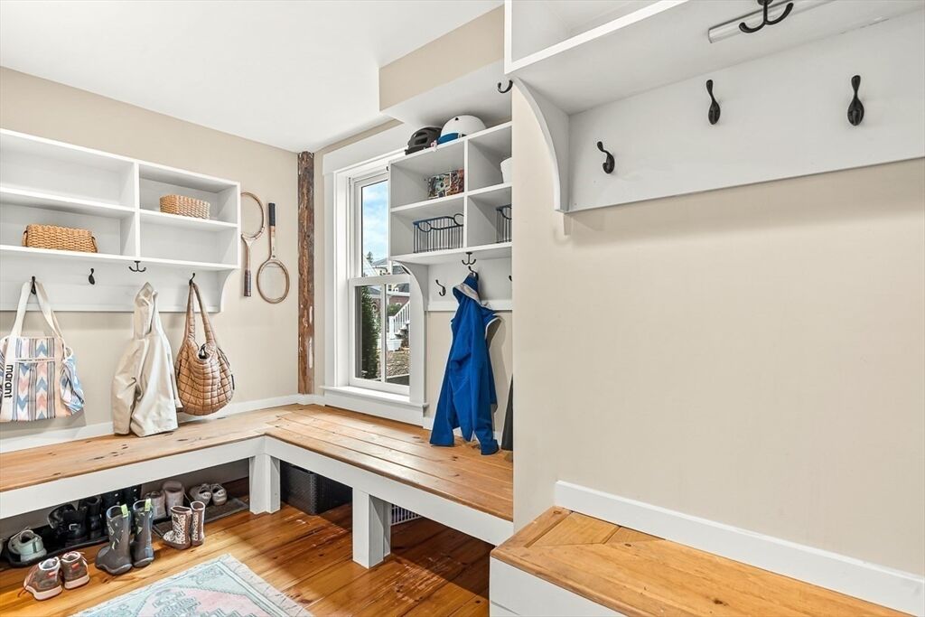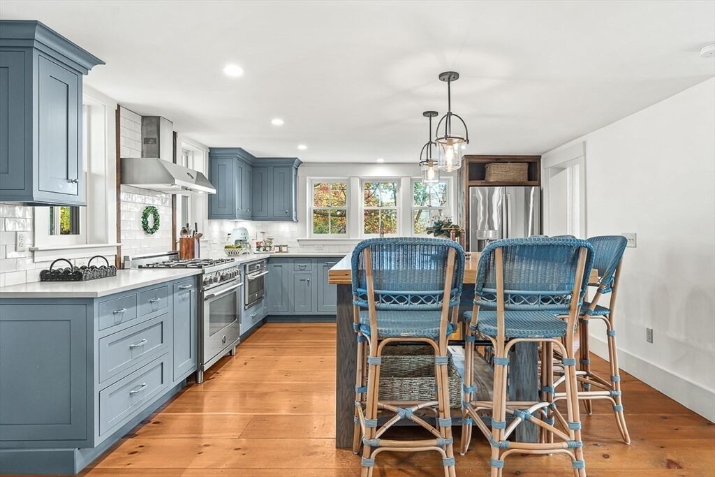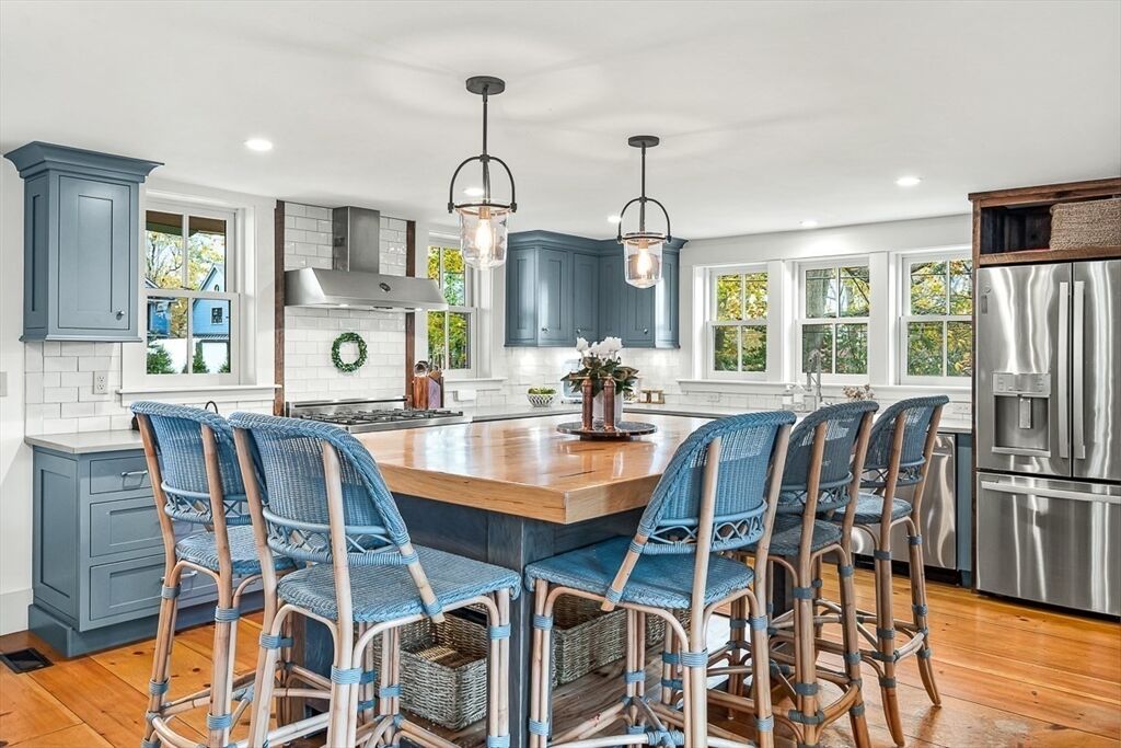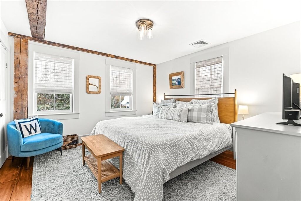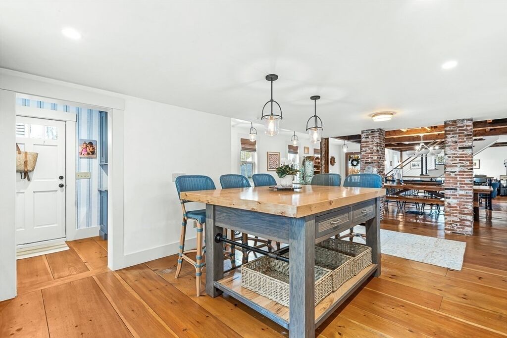 A remarkable fusion of history & modern luxury located in the heart of Downtown Andover. Enjoy the convenience of walking to local cafés, shops, & restaurants. The open-concept design flows seamlessly, highlighted by exposed brick, rich wood beams, & impeccable craftsmanship throughout. The kitchen boasts a walk-in pantry, an impressive center island, high-end appliances, & spacious mudroom designed for everyday functionality. Gorgeous wide-pine floors flow throughout, extending from open dining area into the inviting living rm, which includes a versatile adjoining office or playroom. Second level bedrms include the ensuite, convenient laundry rm, additional full bath & ample closet space. Finished LL w full bath great for guest suite, family rm, home gym, etc. Two covered porches, a beautifully landscaped patio, and a charming garden area create an inviting outdoor retreat. Ideally situated in the highly sought-after Bancroft School District.