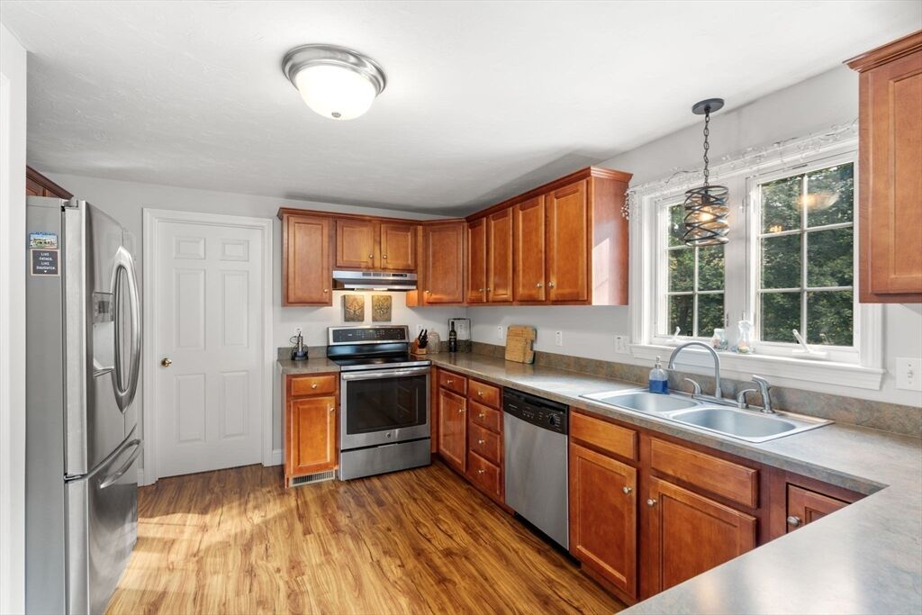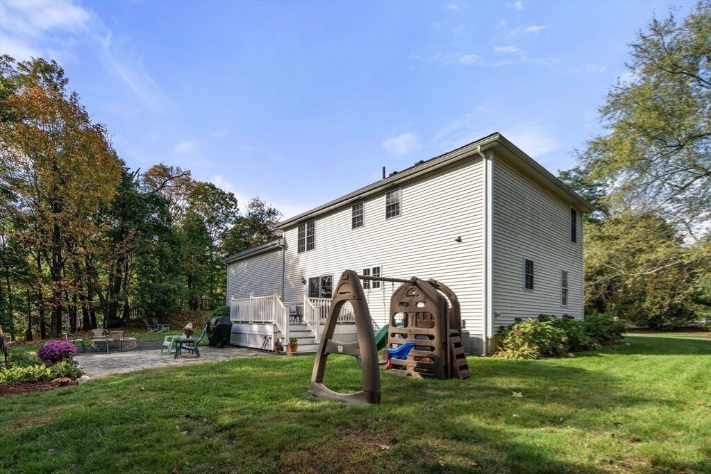 Welcome Home to this spacious Colonial !!The 1st floor has open floor plan which boosts large kitchen, breakfast bar, dining room, office/den, half bath and laundry room. Off the kitchen features an extra bonus room with cathedral ceiling and fireplace making it a great space to celebrate holidays and making memories. Second floor showcase 4 bedrooms and 2 baths with the master bedroom features en-suite and walk in closet. Enjoy the private wooded outdoors on your spacious deck, and patio. New Roof is 2 yrs old and driveway 3 yrs old. Property is close to RI and MA highways.