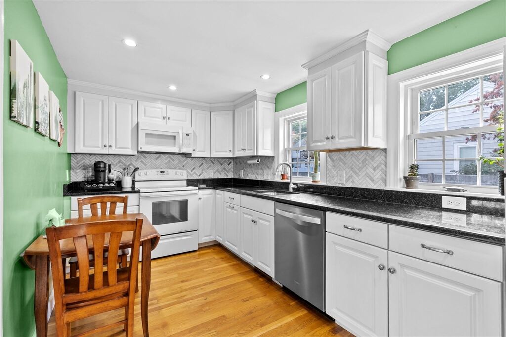 Welcome to 91 Clap Street — a wonderful opportunity for first-time buyers or anyone looking to simplify their lifestyle without giving up space or comfort. This well-maintained ranch offers easy one-level living on a low-traffic dead-end street with a fenced corner lot. The sunny 3-season porch opens from the kitchen and provides extra space to relax or entertain. Inside, enjoy hardwood floors throughout and a bright kitchen with granite countertops, cabinet slide-outs, and a newer dishwasher. Major updates were completed around 2014, including the roof, heating system, windows, plumbing, and electrical. A walk-up attic offers potential for future expansion, and the full basement with a dry zone system adds great storage. Convenient to shopping, restaurants, and the commuter rail — this one checks all the boxes!