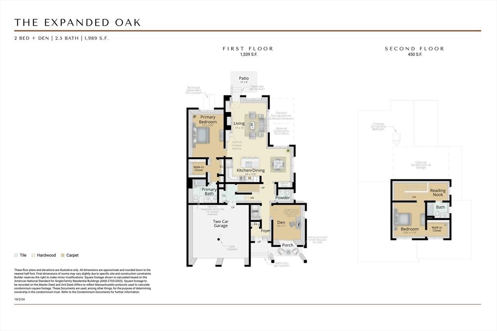 To be built. Delivery early 2026. The Oak has the look and feel of a single family home but without a single family price tag. It]s covered side entry, brings you to the open floor plan featuring a terrific kitchen, dining and living area. The luxurious primary suite and first floor laundry provides ease of living. Also located on the first floor is a den and 1/2 bath. Upstairs is a second bedroom and bath with the ability to expand this floor to include a third bedroom. Exterior Photos in listing are rendered drawings and may feature optional upgrades. Interior pictures are of a previously built home and feature designer upgrades.
