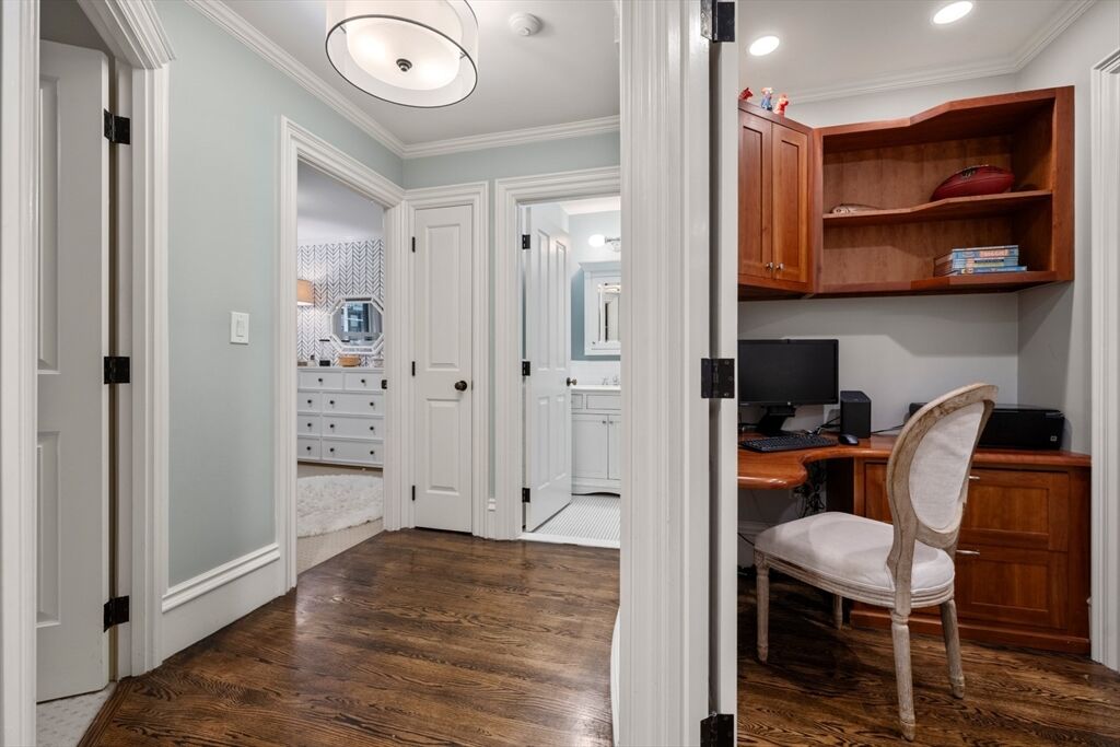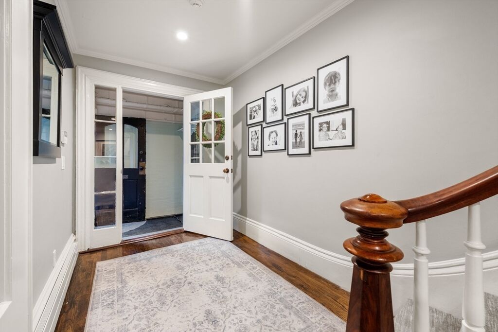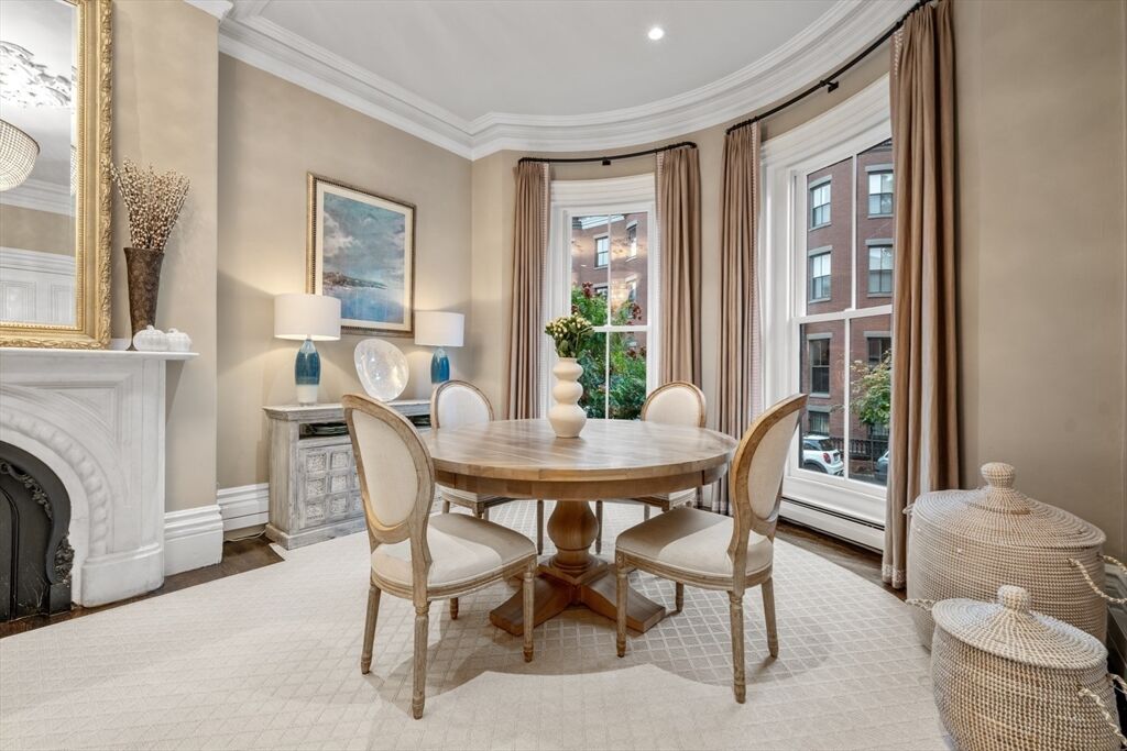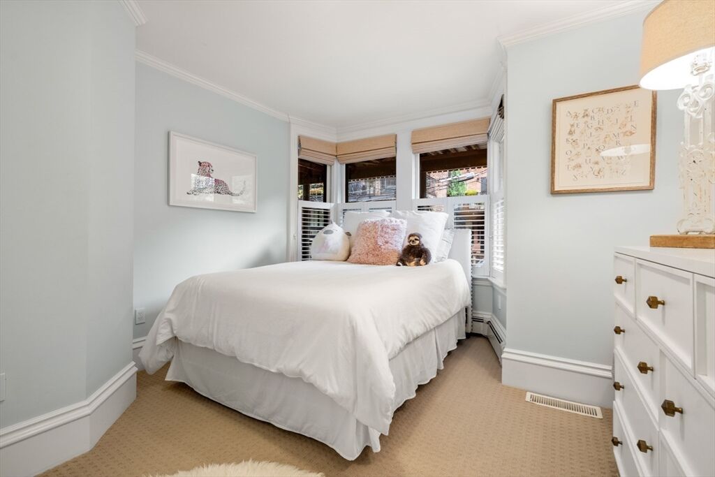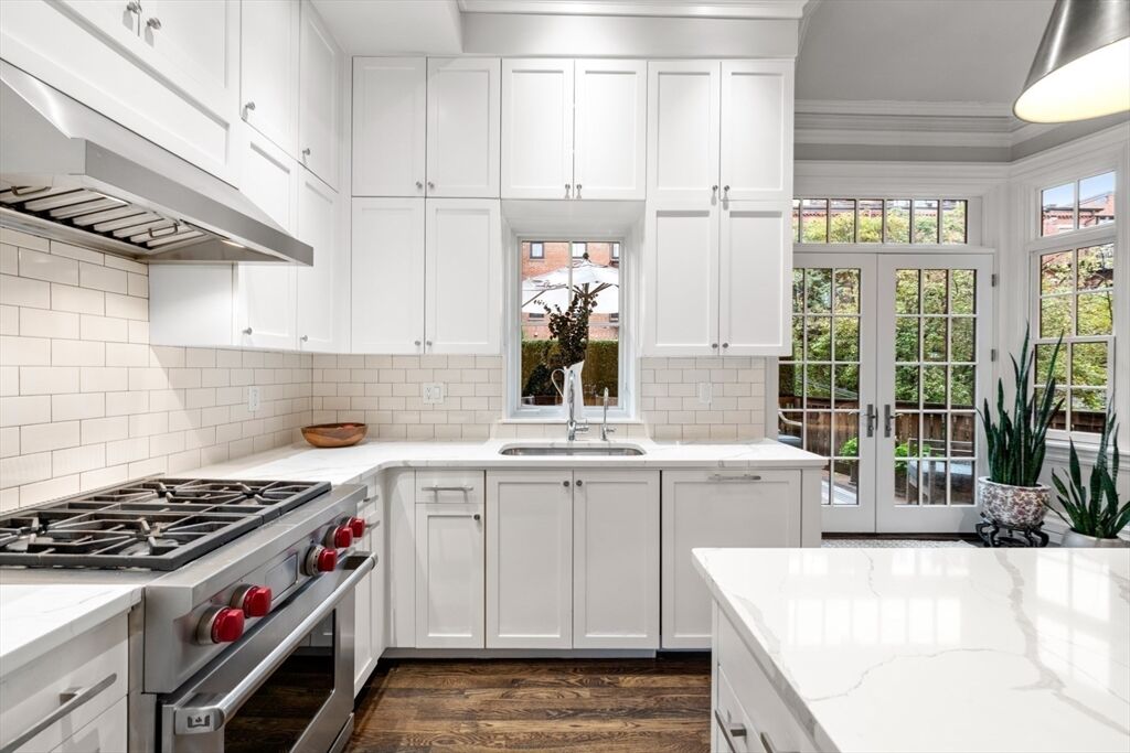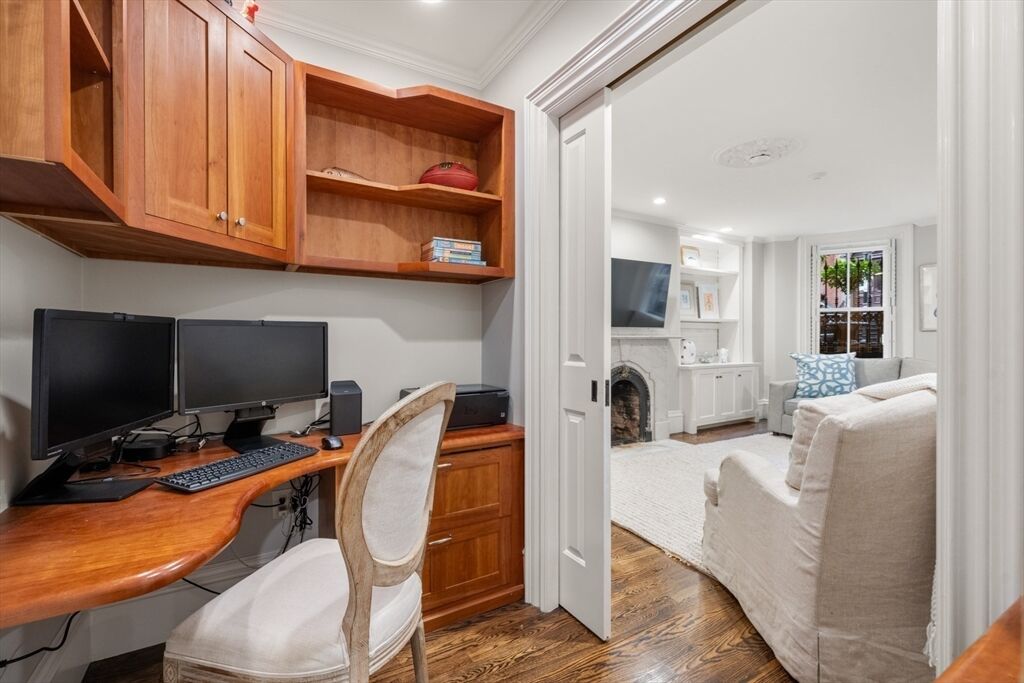 A hybrid of “Boston Classic” & modern detail in this pristine parlor to garden triplex offering 3+ beds, 2.5 baths, 20’-9” x 13’-10” deck off the kitchen (plumbed for gas/water), patio and direct access to 2 parking spaces. Entry foyer opens into double-parlor with high ceilings, dining area with gas fireplace and original detail including the marble mantel, moldings & pocket doors. Attention to detail was used in designing the spacious kitchen offering double stack cabinetry, quartz counters, subway tile backsplash, professional grade appliances and floating island. This home offers a bow-front family room with custom-built-ins, designated home office and a primary bedroom with walk-in closet & en-suite bath. Features include 2 spacious guest beds, a/c, walnut stained h/w floors, custom window treatments, generous storage and mudroom with built-in cabinetry, w/d & sink. This condo comes with roof rights giving the owner a unique opportunity to build a private roof deck with City Views