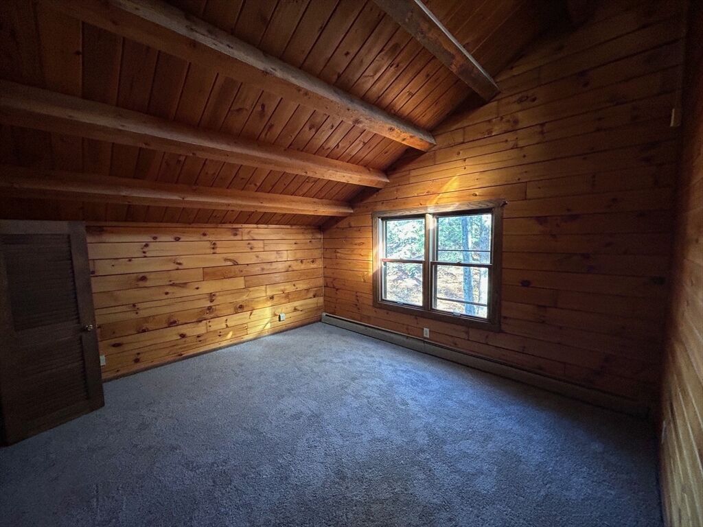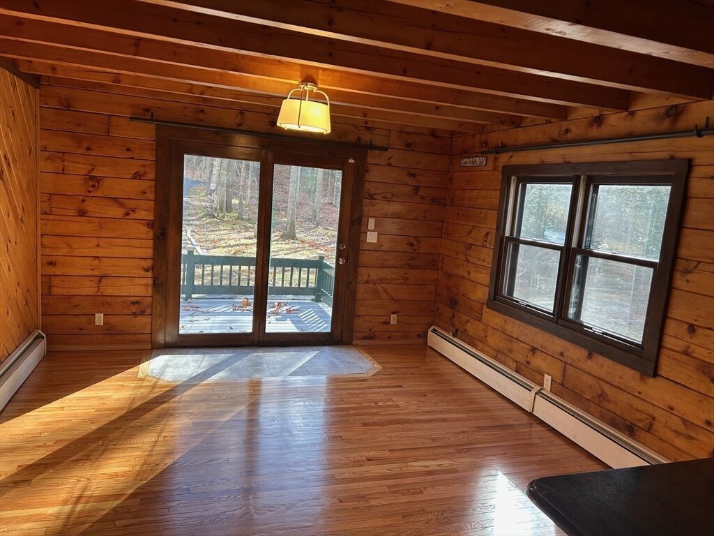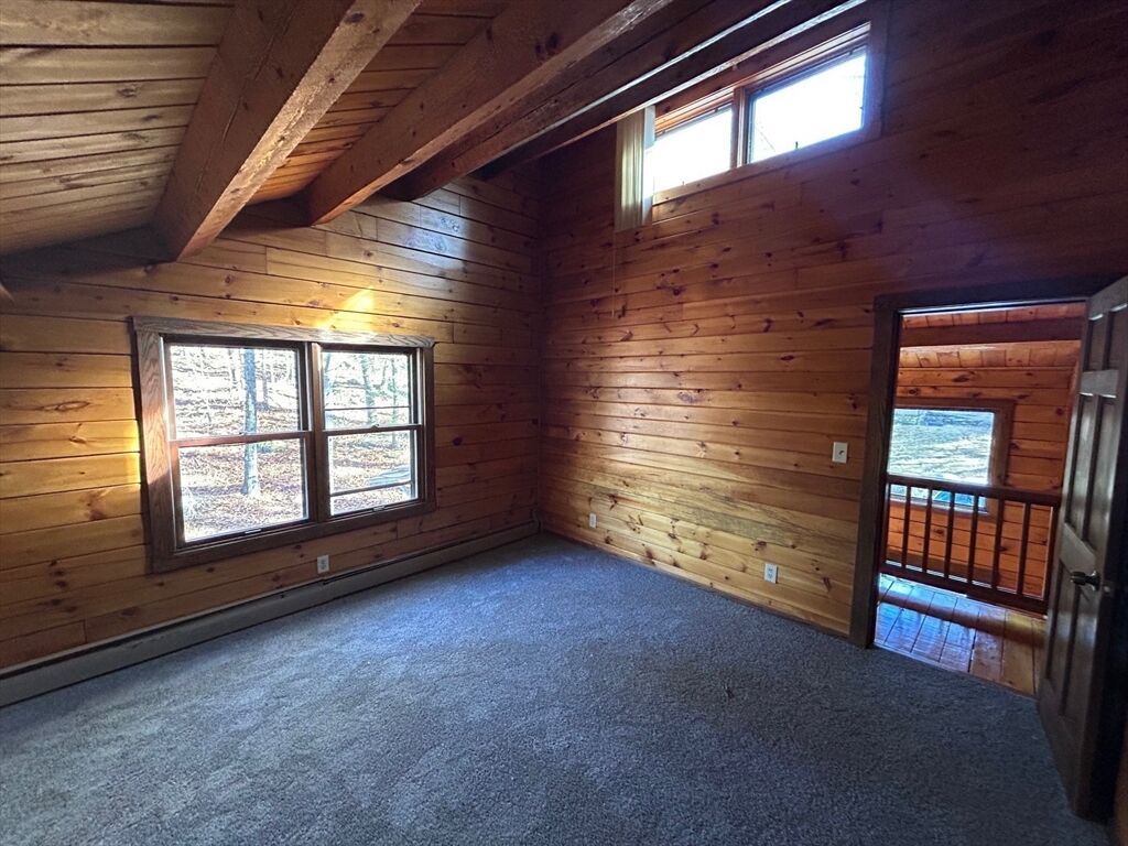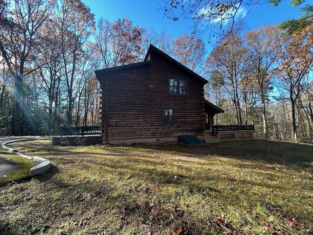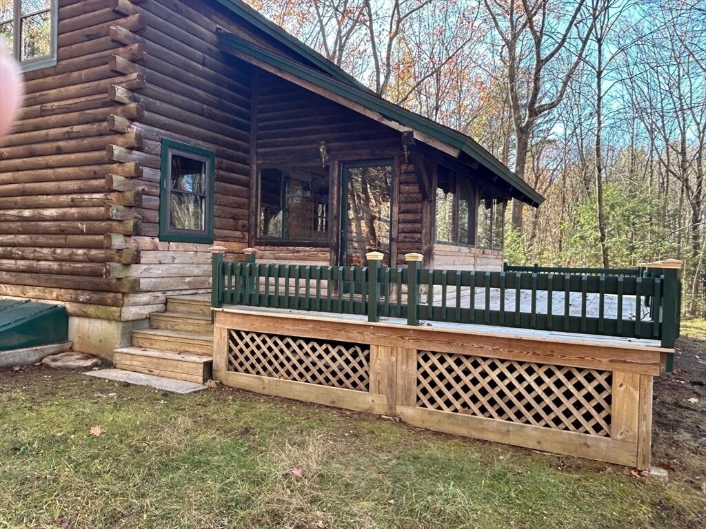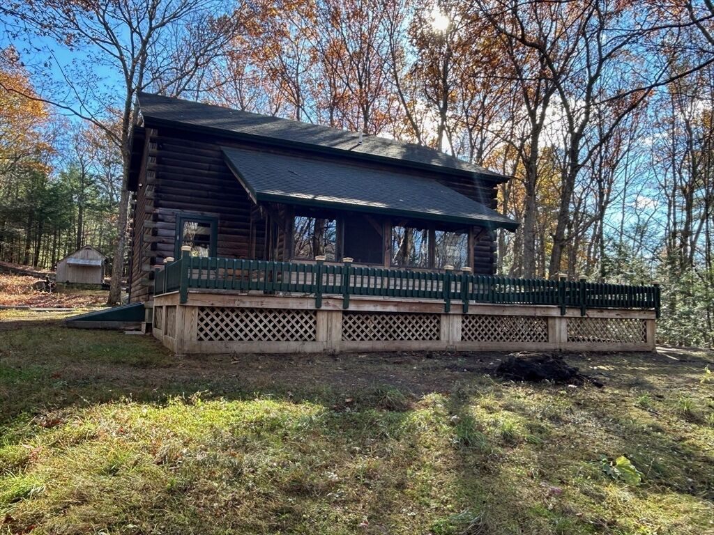 Private Log home with 3 beds and 2 baths - On over 2 acres. Pine throughout with a fireplace. Harwoods on the first floor and Pine on the second floor, bathrooms and kitchen have tile. A new water treatment system and boiler was serviced for this coming season. The basement had been partially finished. Private large yard with 2 large sheds. The back deck is large and private.