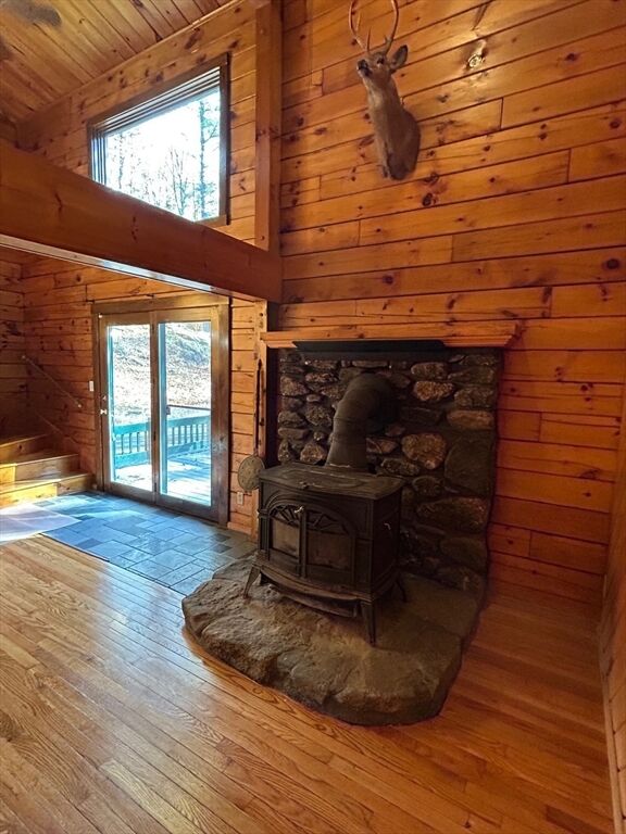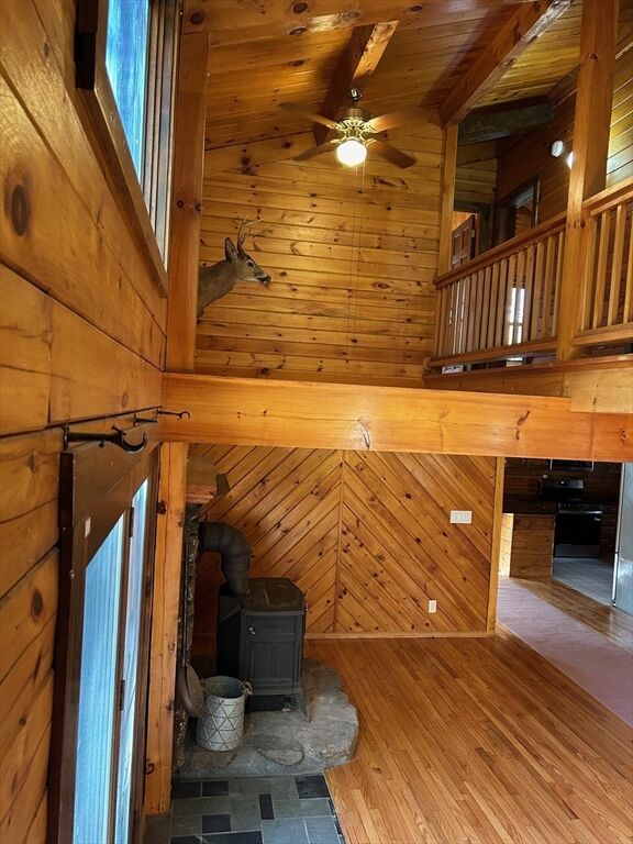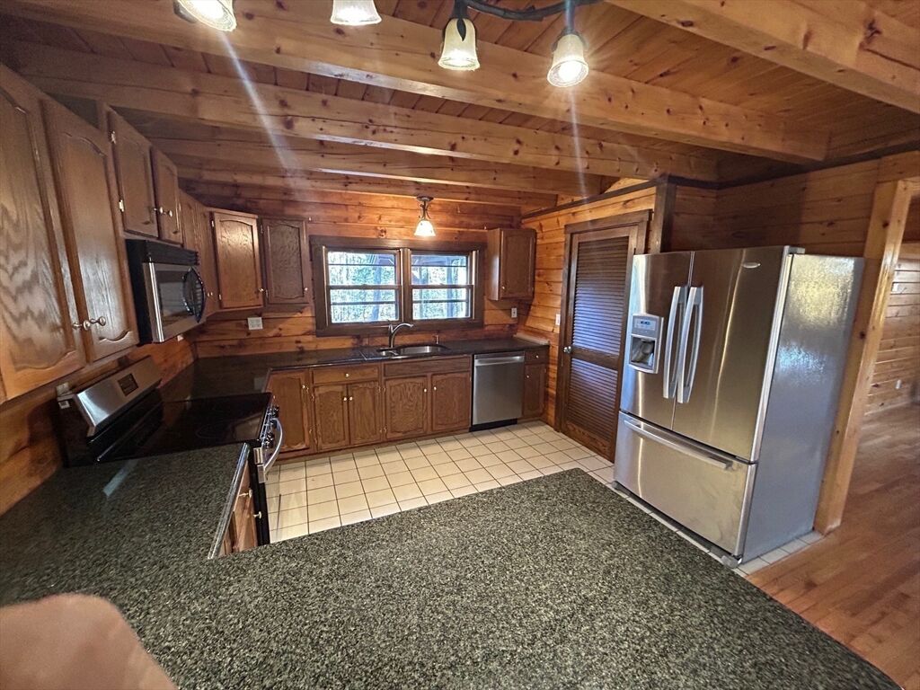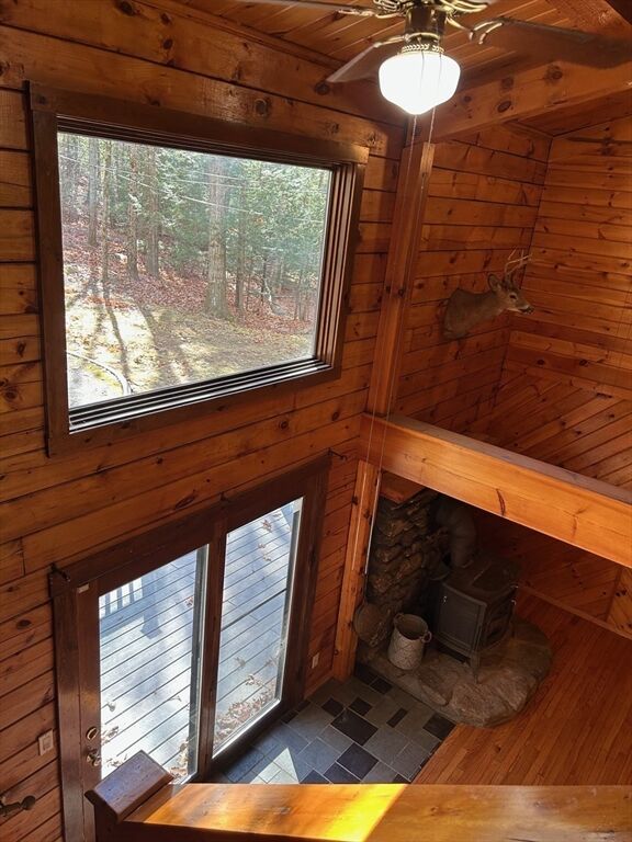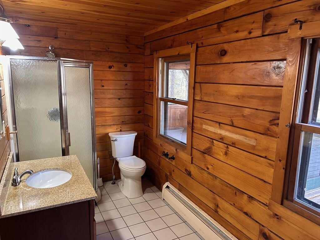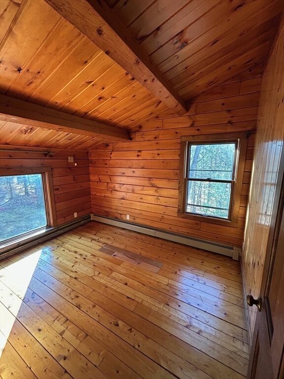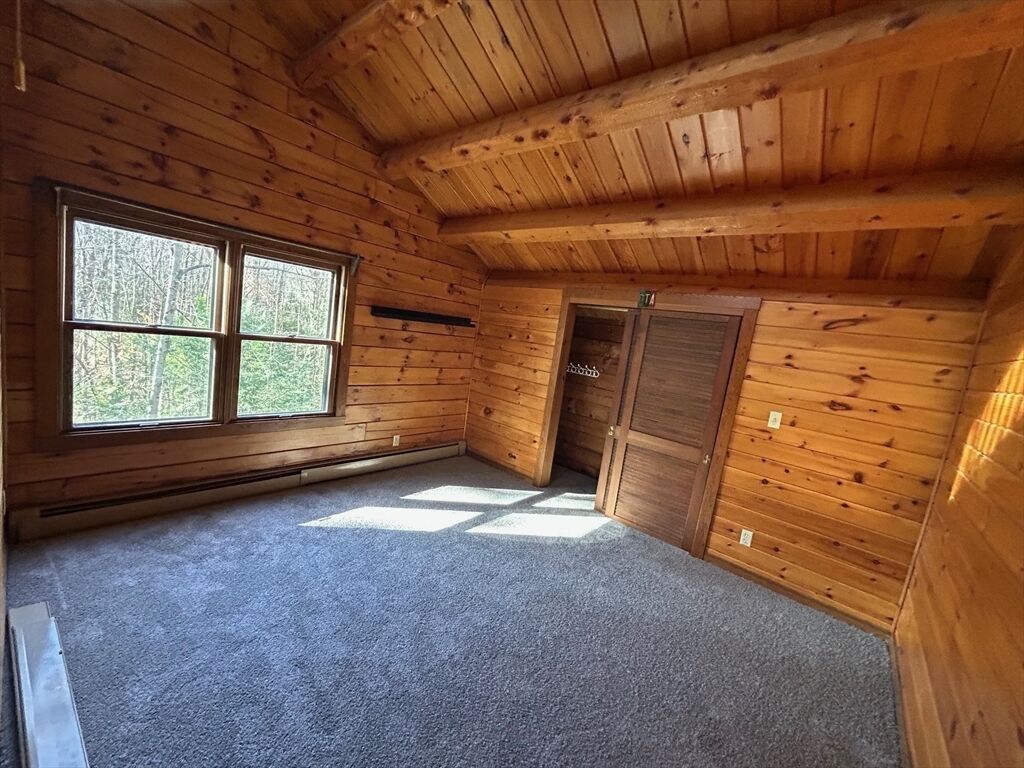 Private Log home with 3 beds and 2 baths - On over 2 acres. Pine throughout with a fireplace. Harwoods on the first floor and Pine on the second floor, bathrooms and kitchen have tile. A new water treatment system and boiler was serviced for this coming season. The basement had been partially finished. Private large yard with 2 large sheds. The back deck is large and private.