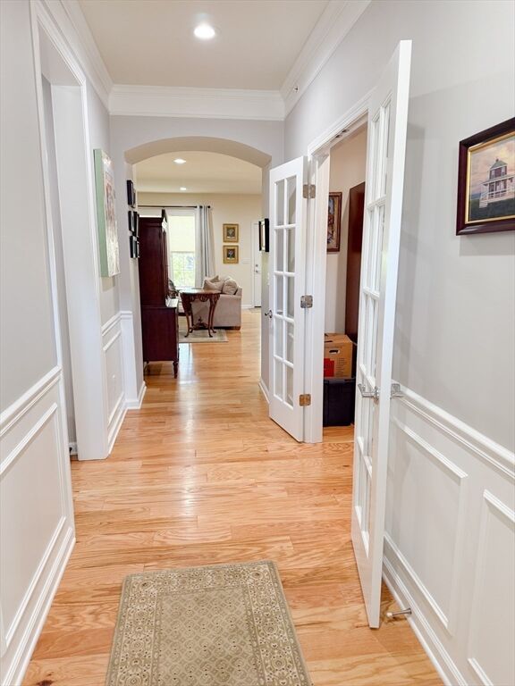 Beautiful Trentino One Story Design at Brooksmont of Holliston, a 55+ active Adult Community. This condo has everything you are looking for with convenient one level living. Open Floor Plan with Kitchen, Dining Area and Living Room great for gatherings! The Kitchen features huge center island with built-ins, custom soft close cabinets, granite countertops, tiled backsplash, upgraded stainless steel appliances 2022 dishwasher and 2022 double oven . Generous size Primary Bedroom Suite with tiled shower, light with heat lamp, large double vanity with quartz countertop and large walk-in closet. 1st floor Office with French Doors. 9 foot ceilings, Upgraded Electrical panel. Lower level 2022 features 775 SF 2 rms finished fully insulated with heat, AC and daylight windows! New LED flush mount lighting throughout, California closets in Primary BR, Pantry & laundry Rm, 2 car garage, gas heat, new blinds & alarm system. Community Garden .Convenient to Downtown Holliston & major routes