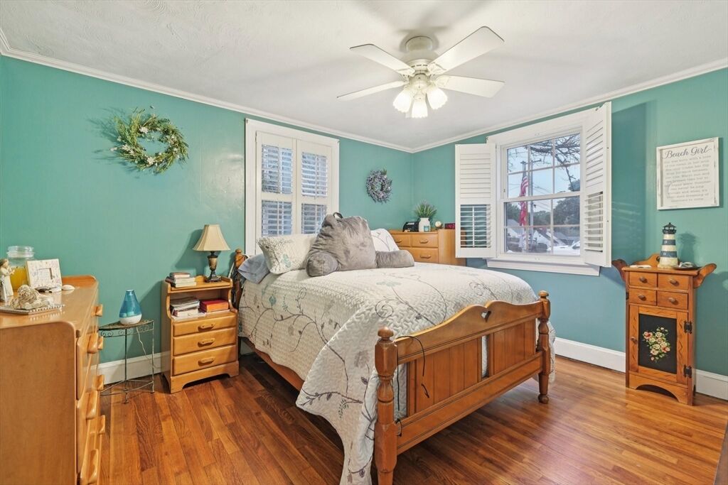 Welcome to this sun-drenched North Weymouth home, where every detail is designed for both comfort and style. Hardwood floors and crown molding set a timeless tone throughout the light and airy living spaces. Start your mornings in the cozy breakfast nook, accented by exposed beams, or retreat to the spacious main-level primary suite with its beautifully updated bathroom. Upstairs, generously sized bedrooms offer abundant closet space, while a versatile bonus room provides the perfect spot for a home office, playroom, or guest space. The well-insulated basement adds exceptional storage, keeping your home as organized as it is inviting. Outside your door, the best of the South Shore awaits—spend your afternoons at Wessagusset Beach, enjoy shops and restaurants at the Hingham Shipyard, or hop on the ferry for a stress-free ride into Boston. With Nantasket Beach nearby and quick access to Quincy and the city, this home blends the charm of seaside living with unbeatable convenience.