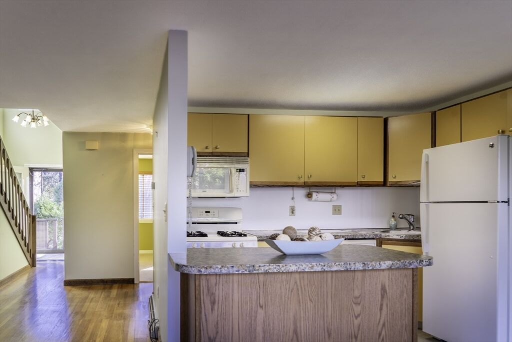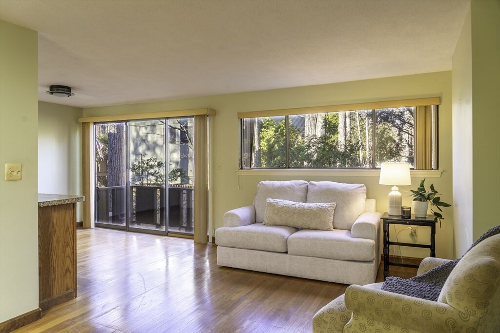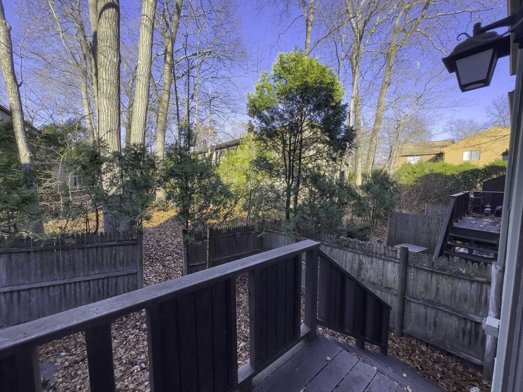 Showings begin with OH Thursday 11/20 5-6:30pm. Discover the perfect blend of comfort, convenience, and location in this beautifully maintained 3-bedroom, 2.5-bath condo. Featuring a desirable first-floor bedroom and full bath, this home offers flexibility for guests or single-level living. The main level showcases gleaming hardwood floors, an open living and dining area, and direct access to a private, fenced backyard—ideal for relaxing or entertaining. Upstairs are two spacious bedrooms and a Jack and Jill bath providing full bath access to both. The large open basement level offers a large laundry area and great storage as well as garage access, This is a popular, quiet, wooded neighborhood just steps from shops and restaurants. There is direct access to major highways (10 minutes) and two nearby T stops—making Boston just 30 minutes away. A rare find that combines comfortable living, peaceful surroundings and commuter-friendly convenience. Don't miss this!