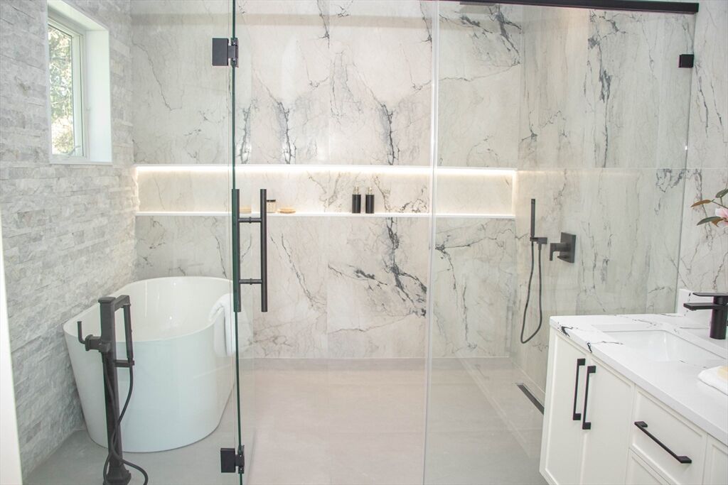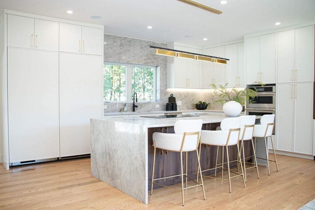 Crafted to perfection, this stunning new 5 BR, 5.5 BA home blends timeless elegance with modern luxury. The heart of the home is its expansive living area offering 4,799 sq ft of space designed for both grand entertaining and intimate gatherings. Thoughtfully appointed with 9’ ceilings, red oak floors, and exquisite custom millwork throughout. The gourmet kitchen showcases quartz countertops, custom cabinetry, and top-tier appliances, opening to a sun-filled family room with elegant fireplace and sliders to a paver patio and landscaped yard. The serene primary suite features a spa-like bath with soaking tub and walk-in closet. Additional highlights include 3-zone HVAC, 400 AMP electrical, and an insulated 2-car garage. Prime Needham location near shops, train, and top-rated schools.