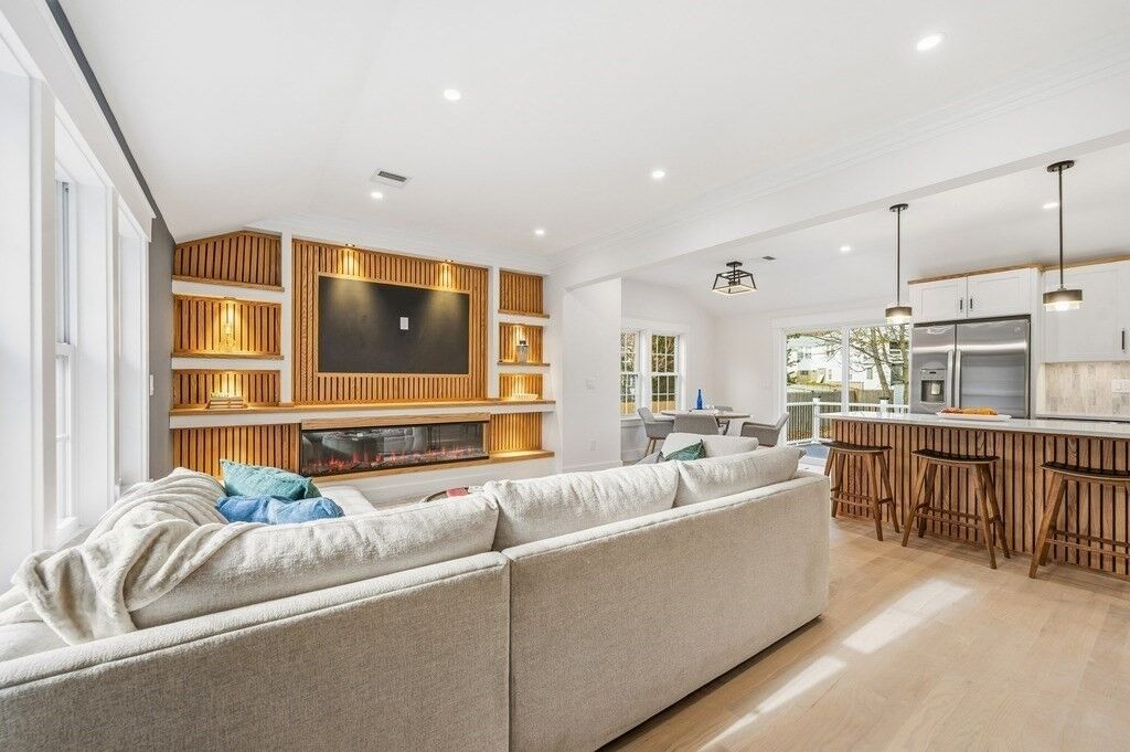 Completely gut-renovated and reimagined from top to bottom, this beautifully updated split-entry home offers 4 bedrooms, 3 full baths, and just under 2,000 sq ft of brand-new living space on a level 0.34-acre lot in desirable Reading. The bright, open main floor features custom millwork, a sleek linear fireplace, and a chef-ready kitchen with modern appliances, flowing seamlessly to the dining area and a large deck overlooking the fully fenced-in yard. Three sunny bedrooms and two new baths complete the main level. The flexible lower level includes a 4th bedroom/bonus room, family room with wet bar, full bath, and direct entry from the garage. Additional updates include a new heating system, new flooring, lighting, and fixtures throughout. A new patio enhances outdoor living. Ideally located close to schools, shopping, restaurants, the commuter rail, and major highways, this turnkey home combines modern style with everyday convenience.
