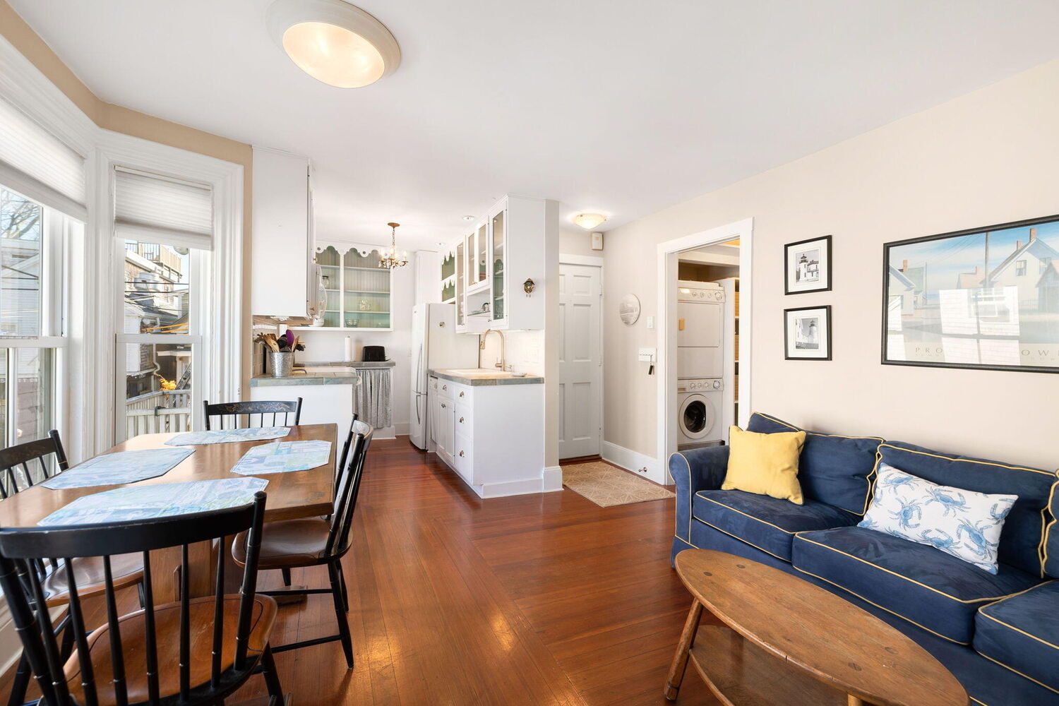 Experience the charm of Provincetown's historic West End in this attractively updated one-bedroom condominium on Commercial Street. Set within an 1850s building and offering 424 square feet of thoughtfully designed space, the home combines historic character with modern comfort. Custom built-ins and clever storage maximize every inch, while warm wood floors, a ceramic-tiled bathroom, in-unit laundry, and an energy-efficient split system provide ease of living year-round. Step outside to a small private nook that's just right for a pair of stools and perfect for enjoying morning coffee or soaking in the neighborhood vibe. Beach access is only steps away, and Provincetown's celebrated restaurants, shops, and galleries are at your doorstep. A separately recorded parking easement located nearby enhances the exclusivity of this property, providing convenient parking in the center of town. Whether you're looking for a weekend retreat, a year-round residence, or an investment property, this turnkey condo is an excellent opportunity. Rentals are permitted, and owners are allowed to have a pet.