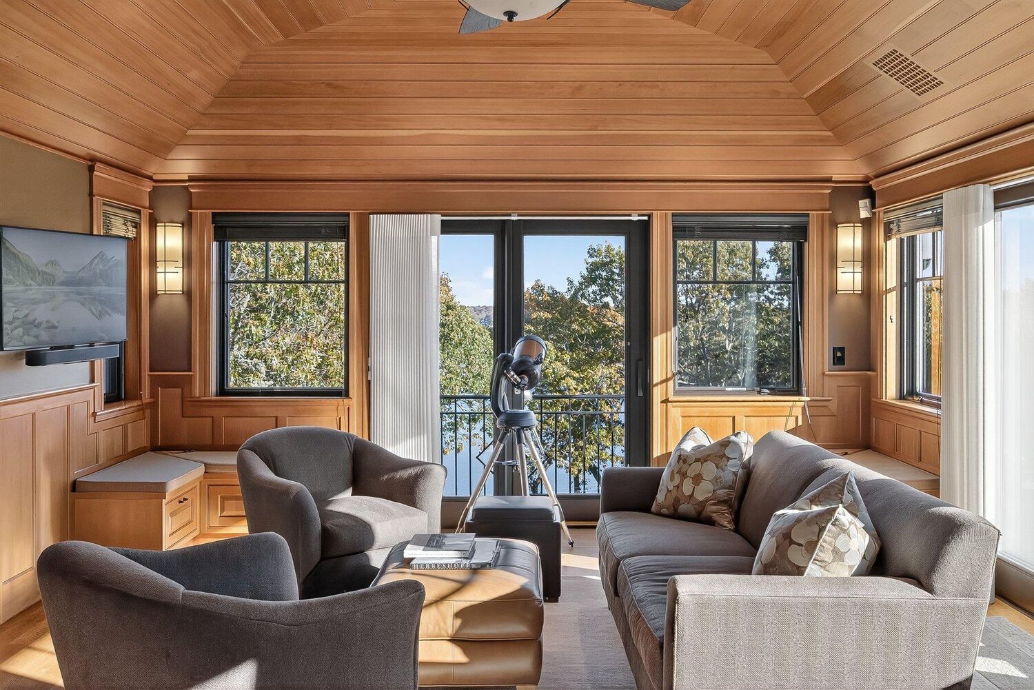 Presenting one of Cape Cod's finest waterfront estates, set on the sparkling shores of Cotuit Bay with a substantial deep-water dock, resort-style swimming pool, and stunning water views. The seven-bedroom residence is finished to the highest standards with exquisite craftsmanship and top-of-the-line finishes. Upon entering, an inviting foyer leads to the heart of the home: an eat-in chef's kitchen that opens to a spacious living area equipped with a wet bar. Glass doors and oversized windows line the waterside of the home, seamlessly connecting to a covered stone terrace with radiant heat, electric hurricane shutters and screens, and an outdoor kitchen. Rich millwork, beamed ceilings, and custom built-ins are showcased throughout, from the formal dining room to a well-appointed family room with cathedral ceilings and a stone fireplace. An en suite bedroom completes the main level, while an elevator servicing each floor provides the utmost convenience and accessibility. On the second level, an expansive primary suite boasts two private balconies, two walk-in closets, a sitting room, a sumptuous bathroom, and mesmerizing views of Cotuit Bay. Two additional bedrooms offer refined accommodations, while a self-contained two-bedroom apartment with a kitchen and full bathroom can be accessed at the end of the hall - ideal for multi-generational living or staff. Designed as a thoughtful retreat and workspace, the third level features a study with panoramic views, two balconies, a kitchenette, and a bathroom.The walkout lower level delivers exceptional flexibility with 2,000 square feet of living space, including a game room, recreation room, bedroom, and full bathroom. Outside, the luxurious pool terrace offers the ambience of a private seaside resort with stunning views of the bay and across to Oyster Harbors. Mere steps away, one of Cape Cod's most significant deep-water docks affords endless possibilities for boating, with direct access to Nantucket Sound.A rare offering waiting to be enjoyed, this extraordinary waterfront compound is located minutes from Cotuit Village, Osterville, and everything the area has to offer.