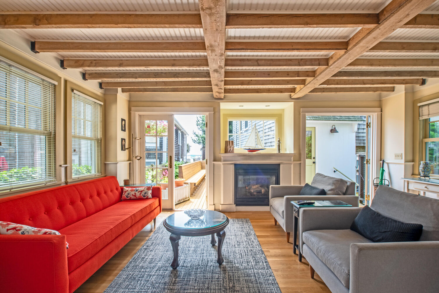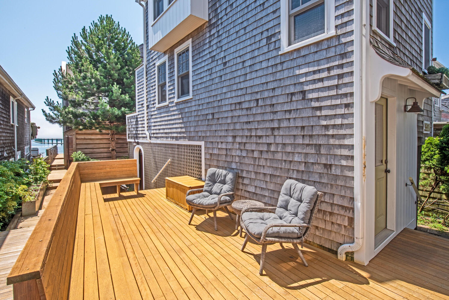 Unit A1 now has parking! The newly established 3-unit Segura Beachfront Residential Association invites you to experience the benefits of beachfront ownership--complete with a sandy shore, harbor views, and meticulously maintained homes. This association serves as a peaceful retreat right in town. You'll feel the shift as you leave the energy of Commercial Street, walk under a gated arbor, cross a stone path, and take in the lush landscaping surrounding you. Currently available is Residence One, a detached 3-bedroom, 2.5-bath home originally built in the 1800s and fully reimagined from the ground up. The design thoughtfully honors its Cape Cod heritage while seamlessly incorporating the needs of modern living. The first floor features an open-concept layout with exposed beams, a fireplace, and connected living and dining areas, along with a spacious, working kitchen. The kitchen offers ample cabinetry and counter space, with a large pass-through window to the dining room, allowing for open sightlines throughout the main level. Classic built-ins--including a hutch and a storage bench--add character and a sense of structure to the open-plan living and dining areas. Two sets of French doors extend the living space onto a large private deck with partial views of the harbor and direct access to your beachfront.Upstairs, you'll find three bedrooms, including a guest bathroom with tile finishes and a primary suite featuring an ensuite bath, cathedral ceilings, abundant natural light, and a generous rooftop deck. From here, enjoy panoramic views of the Bay, the Provincetown Monument, and the town's rooftops. Additional features include central air, gleaming wood floors, basement storage and a shared outdoor shower and much more.We welcome you to explore Residence One at Segura Beachfront Association. Note: Sewer betterment has been paid in full. Taxes and condominium fees are estimated. Parking is separately deeded at 26 Alden St, # 6.
