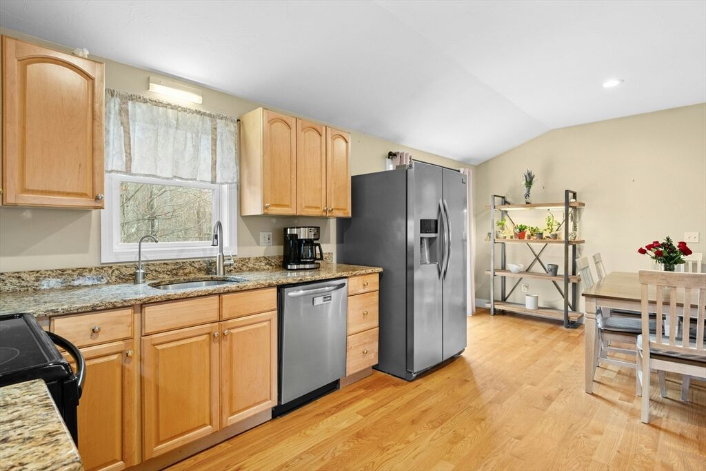 Beautiful single-level living in the heart of Rutland. Perfect for first-time buyers or those looking to downsize, this open and airy 3-bedroom, 2-bath ranch is truly turnkey. Features include an open floor plan with vaulted ceilings, hardwood floors, and a primary suite with walk-in closet and ensuite bath. Enjoy an oversized attached garage and a fenced corner lot offering privacy (lot totals 0.75 acres), vinyl siding, architectural roof, and a large, paved driveway. The basement provides excellent storage and potential to finish. Updates include a new heating system (2025), reverse osmosis filtration, solar panels (2025), and a newer washer/dryer that will convey. This move-in ready home is waiting for you—don’t miss it!