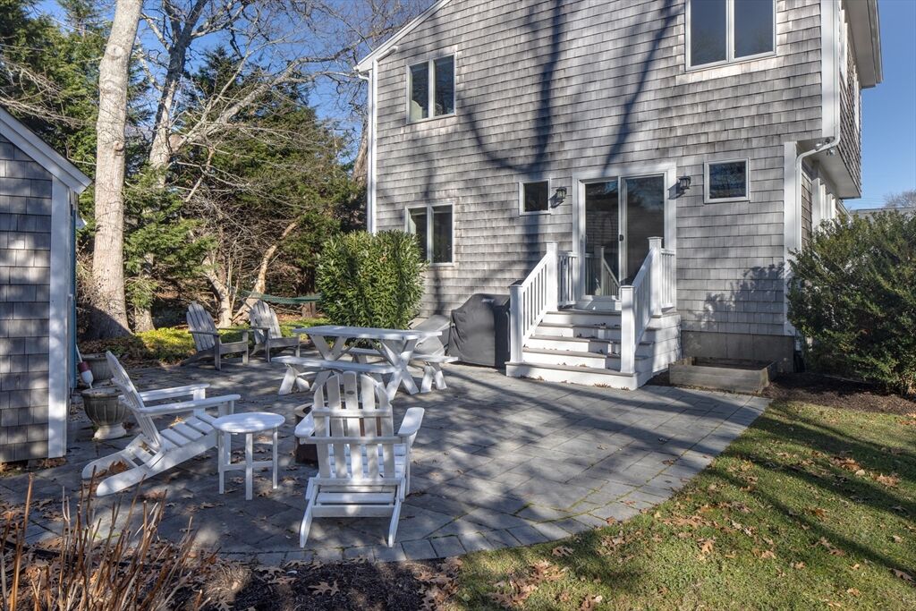 Beautifully renovated, year-round, 4-to-5 bedroom, 2 full bath home in Mattapoisett's desirable Antassawamock Beach Association with water views and beach rights. You’ll find a spacious open floor plan w/ a large eat-in kitchen, sunny living room w/ sliders to a stone patio, 1st floor office or use as a 5th bedroom, and a formal 1st floor bedroom. Each floor has a newly renovated full bath (shower down/tub up). Second floor has 3 additional good size bedrooms. Located around the corner from 2 private beaches, boat ramp for launching small watercraft, floating dock, summer swim raft, ball field, and Casino clubhouse offering activities for kids and adults in summer months. This home has been extensively renovated in the past few years with new windows, roof, siding, updated interior finishes, spacious patio and landscaped yard, and large shed for storage w/ outdoor shower. Hot water baseboard heat and central A/C. Landscaped yard. Town sewer/well water. Don't miss out!
