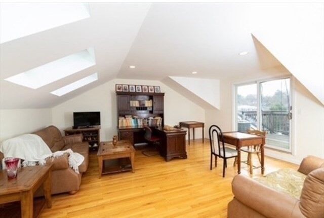 This spacious Newton Corner condo at 548 Centre Street offers an excellent investment opportunity in a high-demand neighborhood where units of this size are seldom available at this price. With 2,428± sq. ft., two full baths, a flexible multi-level layout that provides strong value for both end-users and investors. On the main level find an eat-in kitchen, dining room, and sun-filled family room enhanced by arched architectural details and a trio of windows. Two generously sized bedrooms, each with two oversized closets, for strong rental appeal. This main level full bath has been approved for in-unit laundry. The upper level features a third bedroom with vaulted ceilings, skylights, and a private roof deck, plus an additional loft/bonus room and ample storage. Close to shops, restaurants, transit, and the Mass Pike. Location, space, and price point make it an exceptional opportunity for investors, owner-occupants, and those looking to build equity in a Newton neighborhood