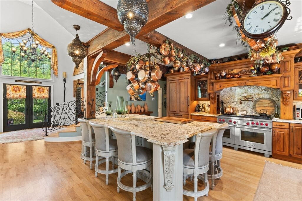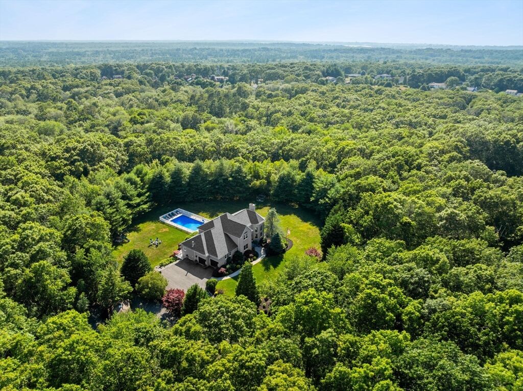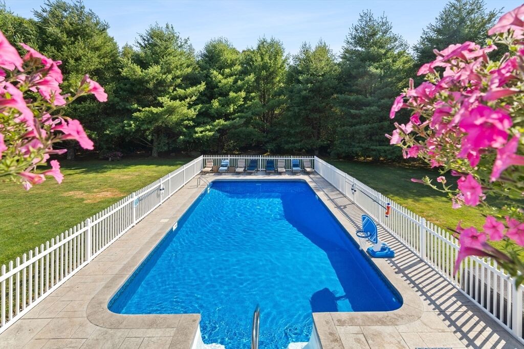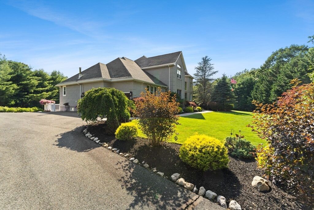 Welcome to this private luxury retreat on over 12 acres in the heart of Dartmouth. A winding drive leads to a grand estate where timeless elegance meets modern sophistication. Inside, enjoy soaring ceilings, rich hardwood floors, and sunlit open living spaces. The custom gourmet kitchen boasts Wolf and Sub-Zero appliances, custom cabinetry, and an oversized island perfect for entertaining. The serene primary suite features a spa-like bath with soaking tub, walk-in shower, and dual vanities. French doors open to a resort-style backyard with an inground pool, lush gardens, and expansive patio. The finished lower level includes a fireplace, full bath, and flexible space. Additional highlights: 3.5 baths, two-car garage, storage shed, irrigation system, and professional landscaping. This exceptional property blends comfort, luxury, and privacy. Showings by appointment only—please do not drive by.