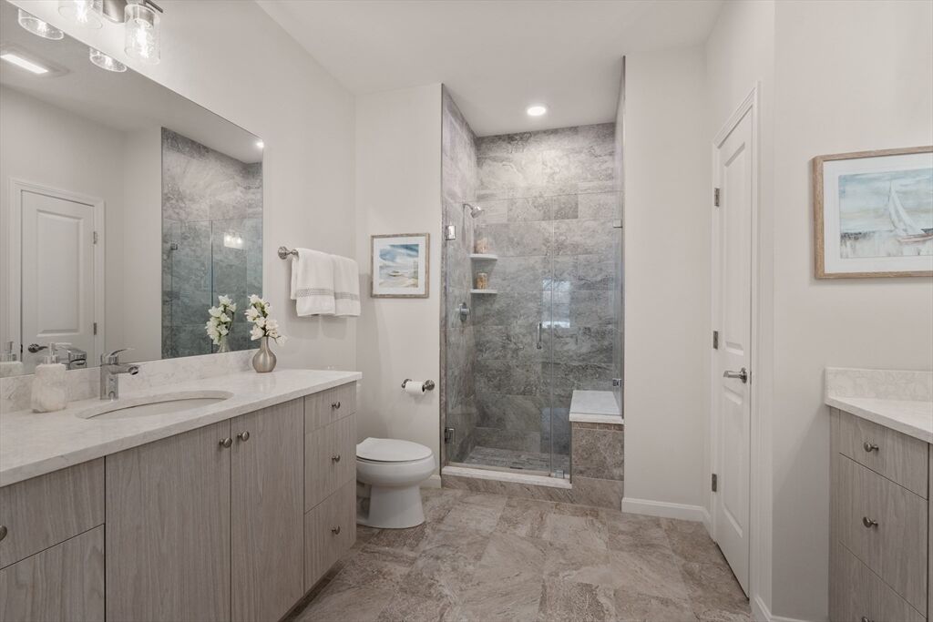 Experience LUXURY, ONE-LEVEL, MAINTENANCE-FREE, AMENITY-RICH LIVING in the premier community of Copperworks. This exceptional CORNER UNIT — THE LARGEST 2-BEDROOM LAYOUT WITH AN OVERSIZED DEN — is flooded with natural light and showcases beautiful CUSTOM UPGRADES. The expansive open floor plan features wide-plank hardwoods and a designer kitchen with QUARTZ COUNTERTOPS, HIGH-END STAINLESS APPLIANCES, AND GAS COOKING. Enjoy a serene PRIVATE SCREENED-IN PORCH ideal for morning coffee or evening relaxation. This rare offering includes TWO GARAGE PARKING SPOTS AND A PRIVATE STORAGE UNIT, plus an IN-HOUSE FITNESS CENTER, ELEVATOR, AND A BEAUTIFUL OUTDOOR COURTYARD WITH GRILL, FIREPLACE & SEATING—all within your building for true ease of living. The community features a RESORT-STYLE CLUBHOUSE WITH POOL, AN ON-SITE RESTAURANT, AND SCENIC WALKING TRAILS. Conveniently located near the Canton Center and Canton Junction Commuter Rails, with quick access to Boston and major highways.