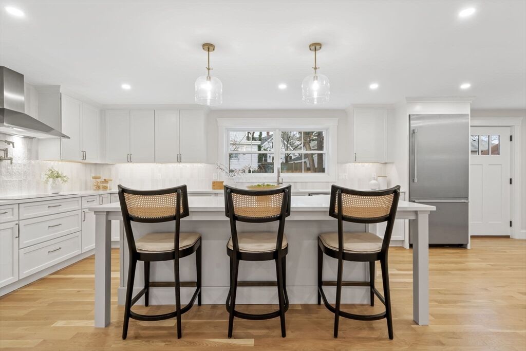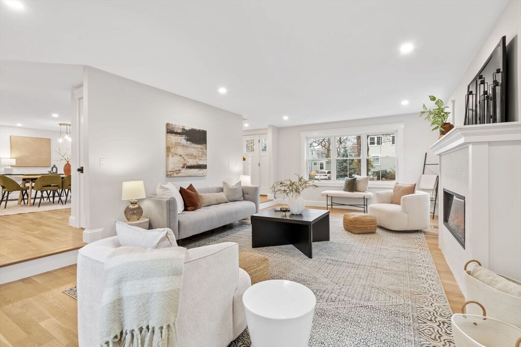 Spacious Colonial in Arlington Heights offering 5 bedrooms, 5 baths, exceptional craftsmanship, and bright open-concept living with white oak flooring throughout. The stunning kitchen with a large island anchors the expansive first floor, which includes a front-to-back family room with a fireplace and flexible areas for dining, lounging, and entertaining. With four finished levels, three living rooms, and multiple office spaces ideal for work-from-home needs, this home offers extraordinary versatility. Energy-efficient systems, spray-foam insulation, and a dedicated second-floor laundry enhance comfort and convenience. The primary suite features cathedral ceilings, a luxurious bath, and generous closets. Outside, a beautifully landscaped yard, stone walls, elegant hardscaping, and a large patio create the perfect setting for outdoor enjoyment. Ideally located near top schools, the bike path, the Reservoir, The Heights, shops and restaurants, with easy access to Route 2, I-95, & Alewife